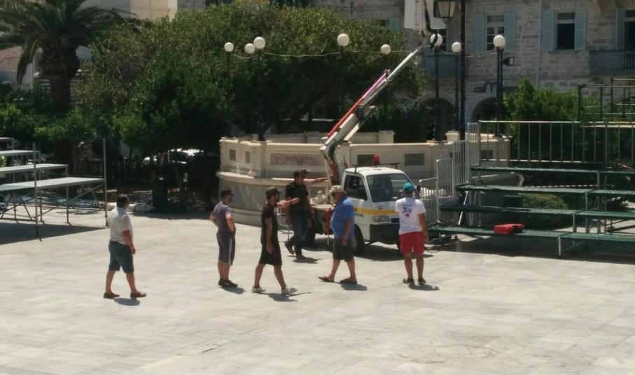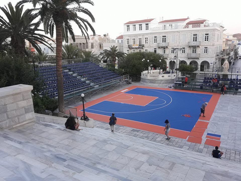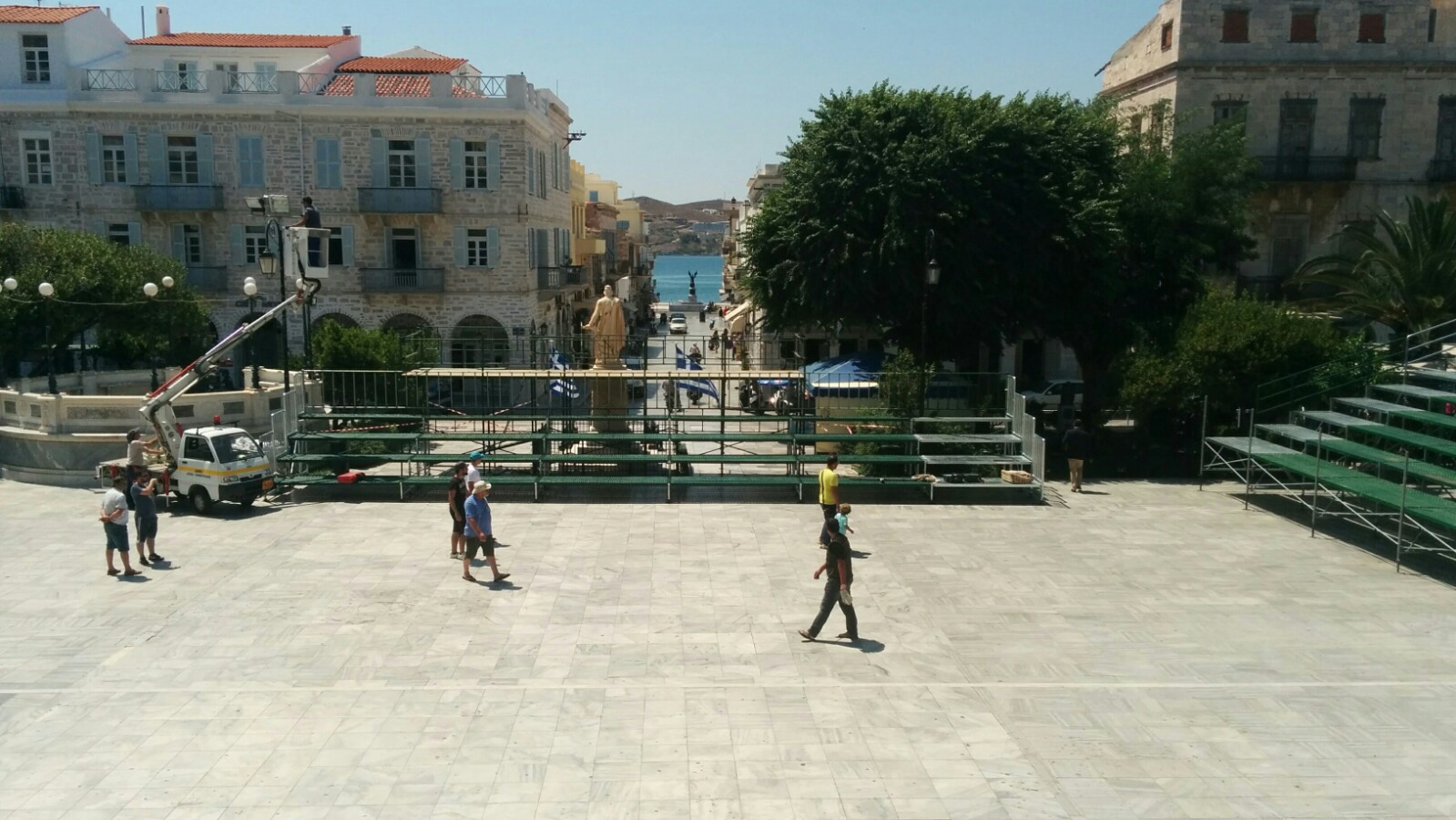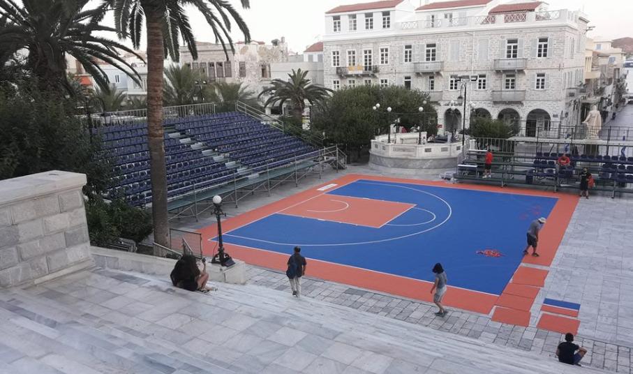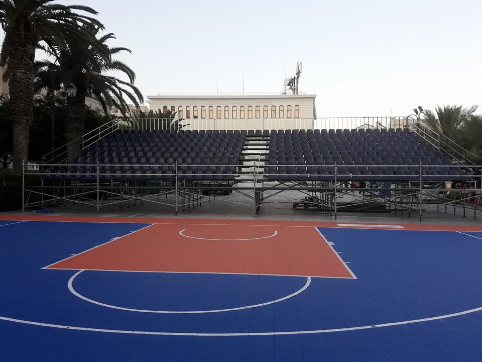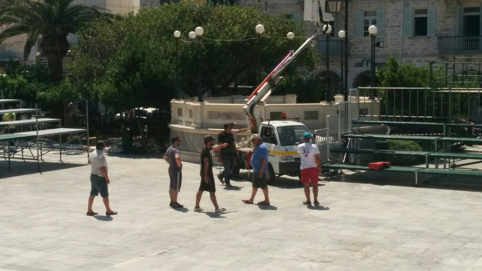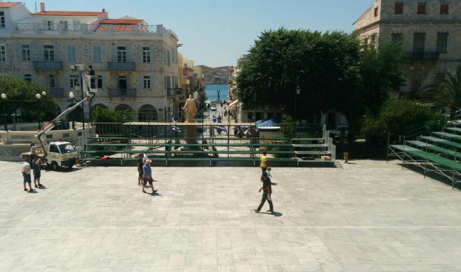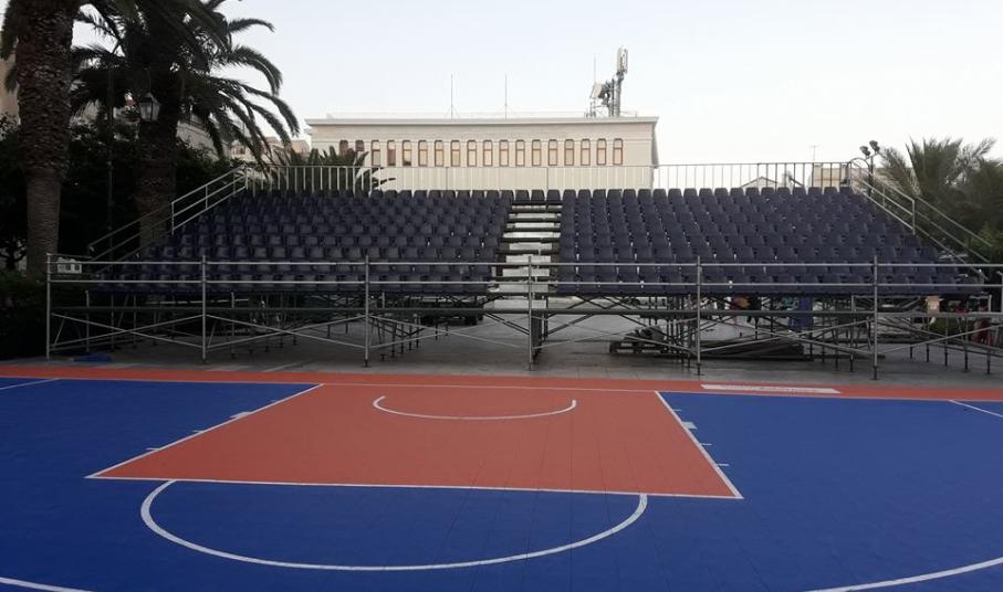 Ξεκίνησαν οι εργασίες στην πλατεία Μιαούλη, όπου μέσα σε σύντομο χρονικό διάστημα είχαν τοποθετηθεί οι εξέδρες για τη μεγάλη… γιορτή του μπάσκετ