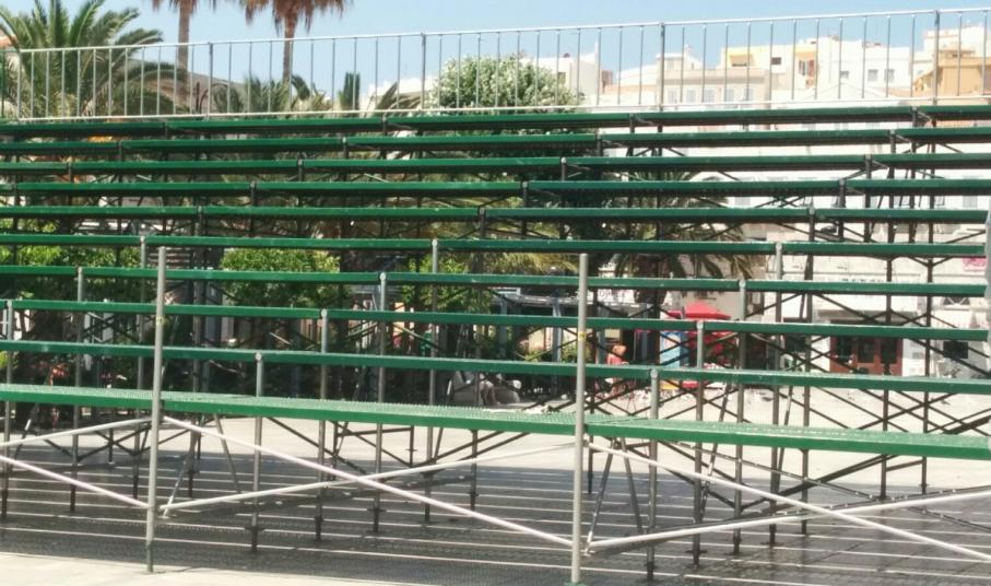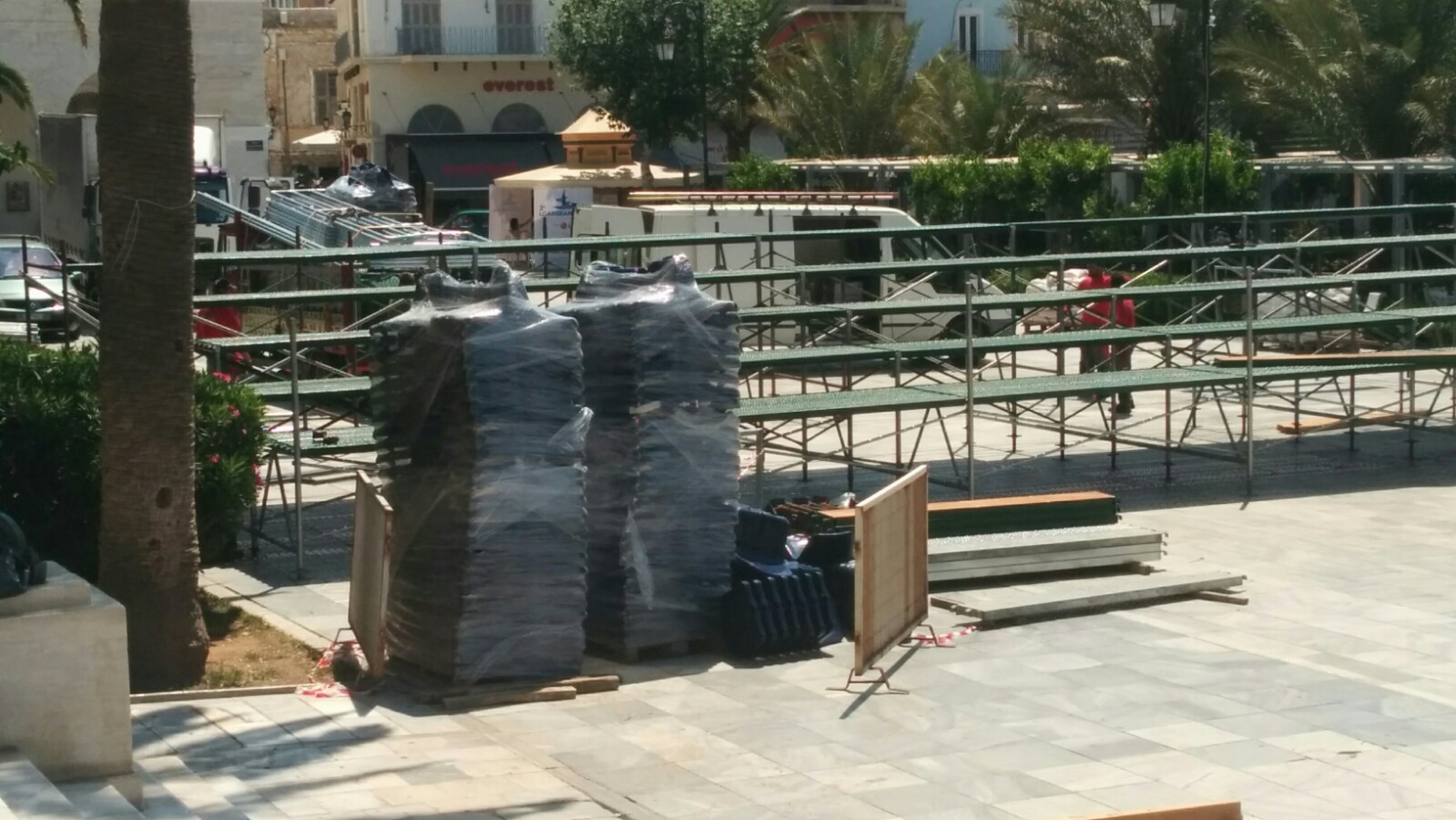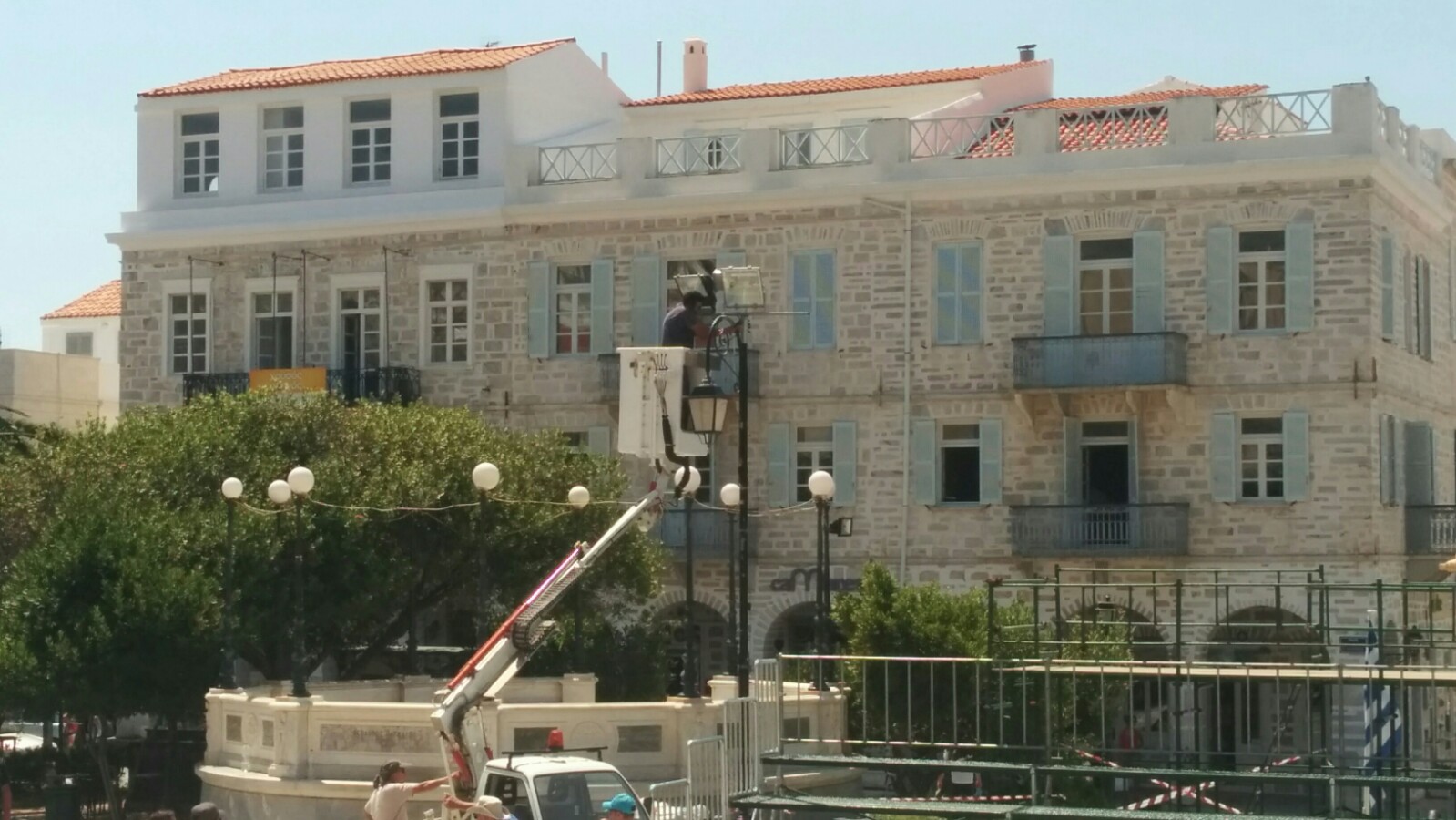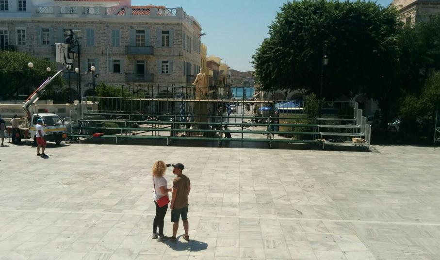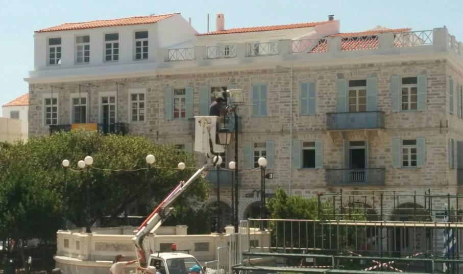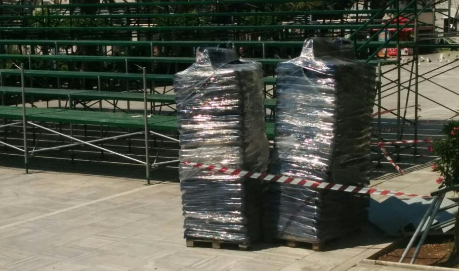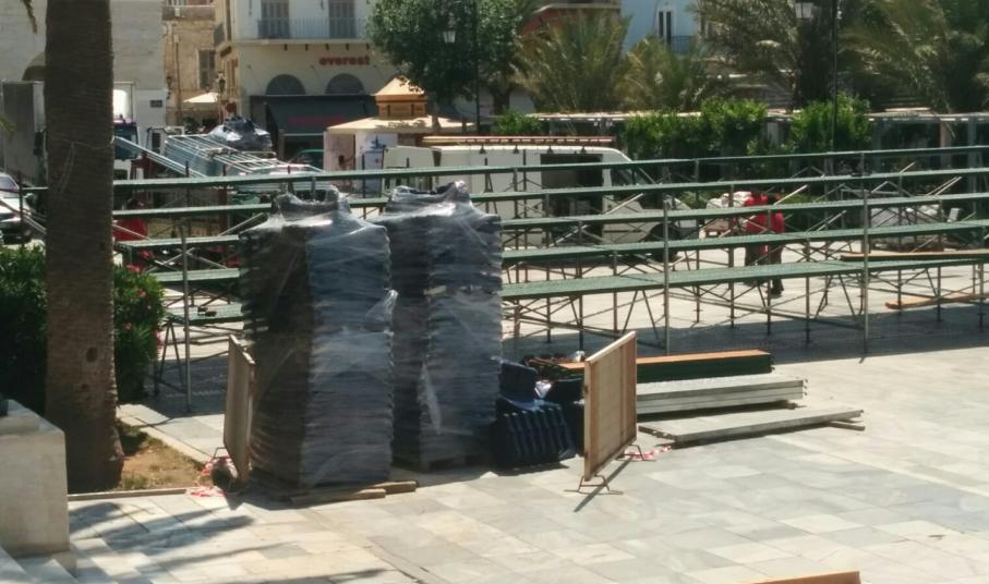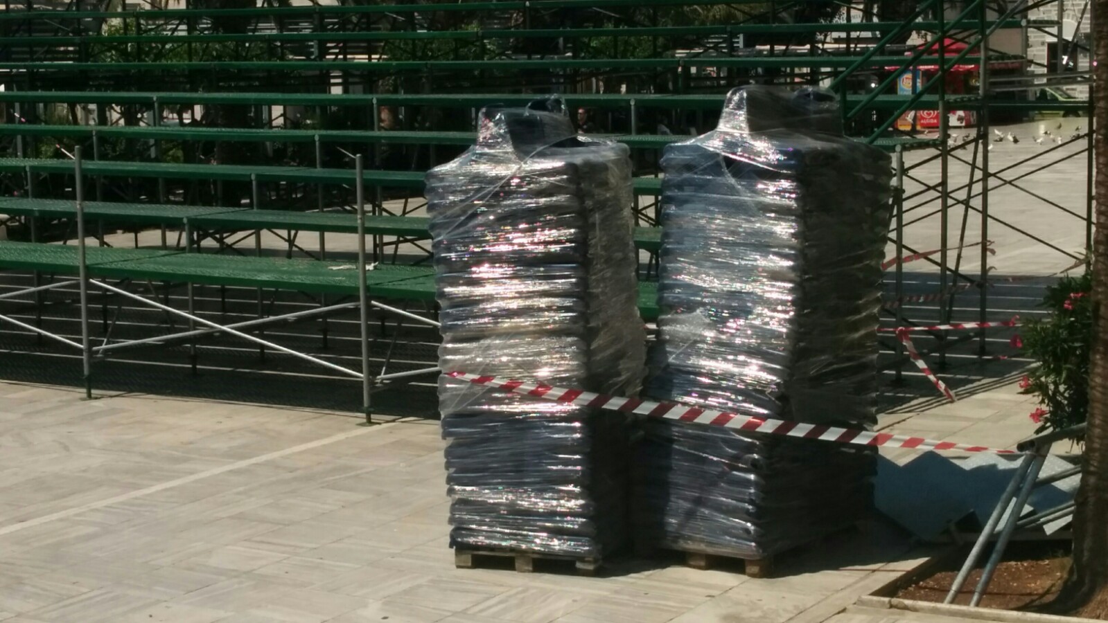 Ξεκίνησαν οι εργασίες στην πλατεία Μιαούλη, όπου μέσα σε σύντομο χρονικό διάστημα είχαν τοποθετηθεί οι εξέδρες για τη μεγάλη… γιορτή του μπάσκετ