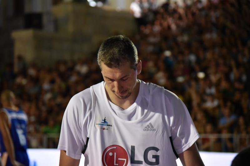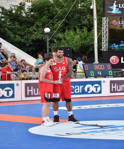 Ο Γιώργος Πρίντεζης, κατά την διάρκεια της εισόδου των αθλητών, έδειξε πόσο καλός οικοδεσπότης είναι στο LG Aegean Ball Festival, αλλά και πόσο ξέρει να τιμά του άξιους συναθλητές του, όπως συνέβη με την Εβίνα Μάλτση, αρχηγό της Εθνικής ομάδας Γυναικών.