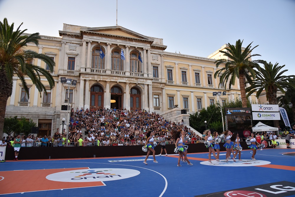 Η Πλατεία Μιαούλη για ακόμη μία χρονιά έζησε μεγάλες μπασκετικές στιγμές. Περισσότεροι από 2000 φίλοι του αθλήματος βρέθηκαν στην κεντρική πλατεία του νησιού και απόλαυσαν ένα μοναδικό θέαμα που τους πρόσφεραν οι μεγάλοι αστέρες του αθλήματος. Ο Συριανός καλαθοσφαιριστής Γιώργος Πρίντεζης έδειξε με τον καλύτερο τρόπο την καλή   του φιλοξενία και μάλιστα και πριν ξεκινήσουν οι αγώνες βράβευσε την αρχηγό της Εθνικής ομάδας Γυναικών Εβίνα Μάλτση. Την παράσταση έκλεψαν, οι Πρωταθλητές Ευρώπης Bogdan Bogdanovic και Κώστας Σλούκας, ο Αμερικανός, Kyle Hines, ενώ πολύ δυνατό χειροκρότημα απέσπασαν και οι Γιάννης ΜπουρούσηςΒαγγέλης Μάντζαρης, Ιωάννης ΠαπαπέτρουΠαναγιώτης ΒασιλόπουλοςΑπόλλων Τσόχλας, Ίαν Βουγιούκας, Γιαννούλης ΛαρεντζάκηςΔημήτρης Αγραβάνης, Βασίλης Καββαδάς και Βαγγέλης Σακελαρίου.