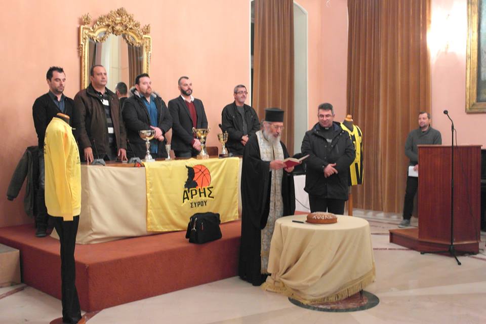 Σύσσωμη η "οικογένεια" του Άρη, διοίκηση, προπονητές, αθλητές, γονείς των παιδιών, αλλά και οι Παλαίμαχοι Άρη Σύρου, έδωσαν το παρών προκειμένου να ανταλλάξουν ευχές για το 2018, μία χρονιά που όλοι ευχήθηκαν να είναι γεμάτη υγεία και πολύ μπάσκετ.