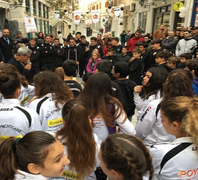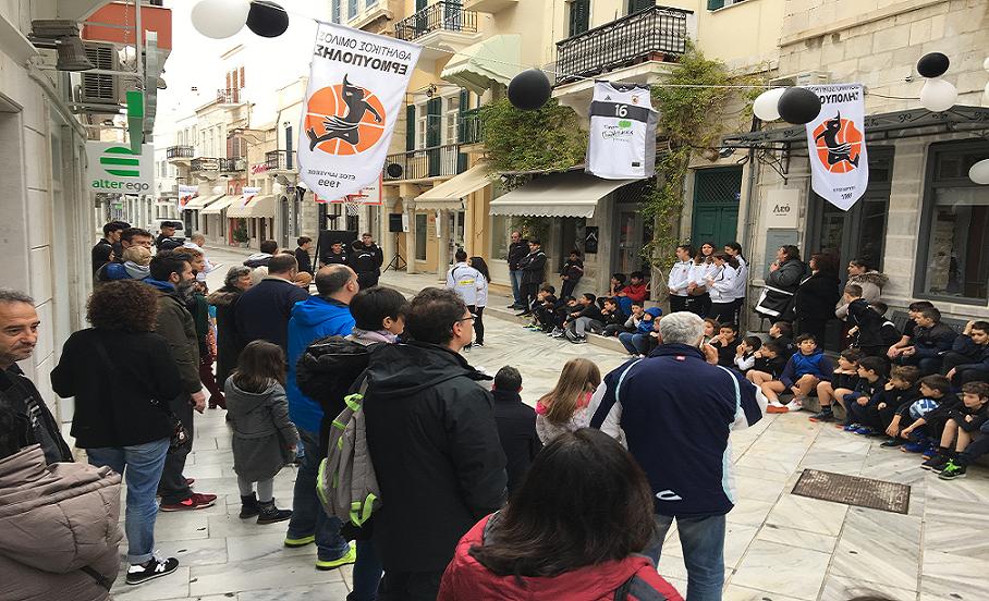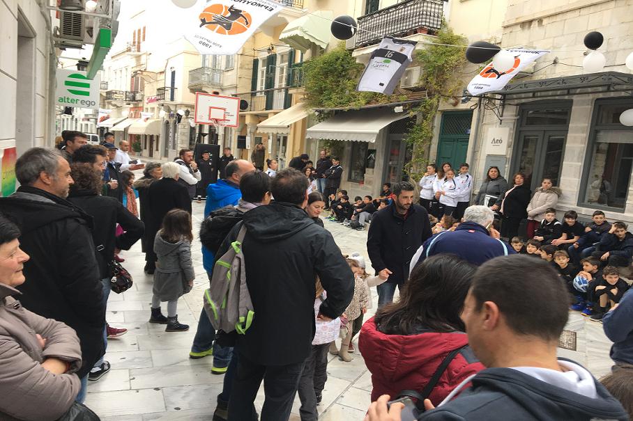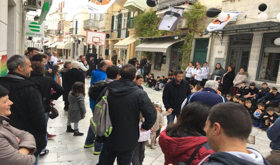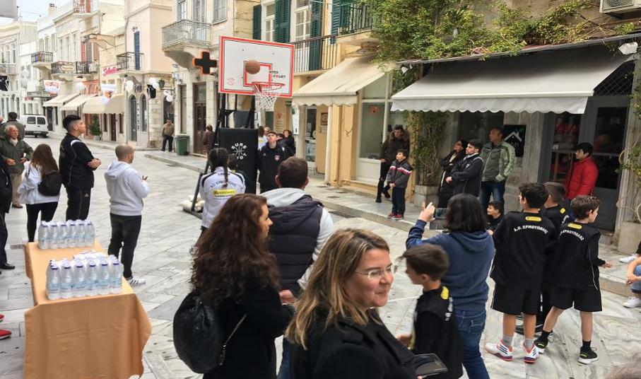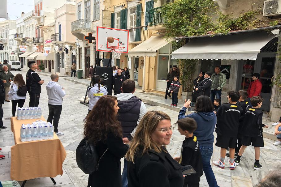 Για την σκέψη να γίνει η εκδήλωση στον πεζόδρομο, στο κέντρο της Ερμούπολης, ο Πέτρος Δεναξάς από τη διοίκηση του Ομίλου, εξήγησε ότι η ενέργεια έγινε «θέλοντας να φέρουμε το μπάσκετ μέσα στην πόλη».