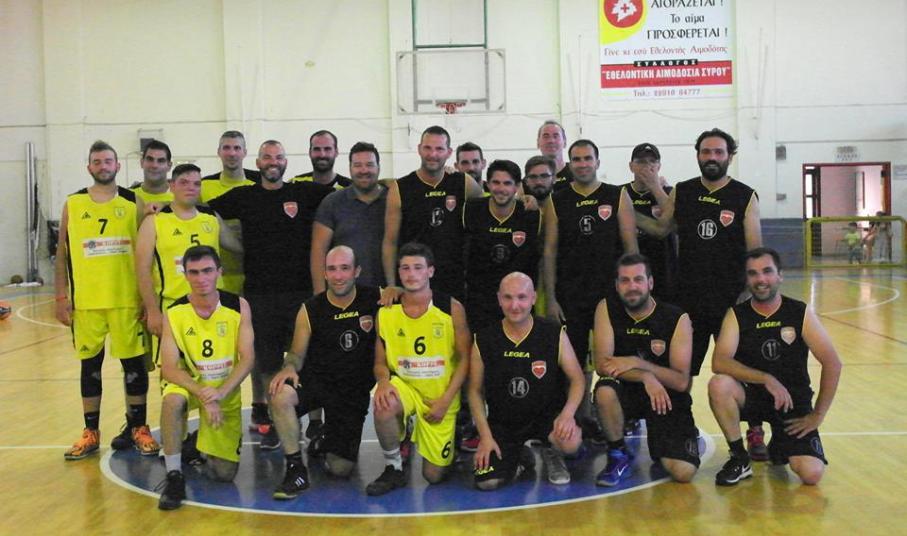 Φιλικό παιχνίδι ανάμεσα στους Παλαίμαχους Άρη Σύρου και το ανδρικό τμήμα του συλλόγου πραγματοποιήθηκε στο κλειστό γυμναστήριο "Δ. Βικέλας".
