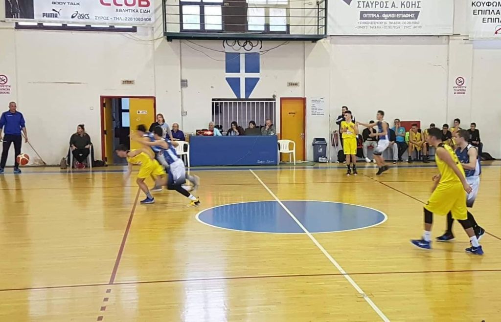 Οι έφηβοι του Άρη Σύρου πήραν τη νίκη απέναντι στον Α.Ο. Άνδρου, καθώς η ομάδα του Αντώνη Βαρθαλίτη επικράτησε στο κλειστό του αθλητικού κέντρου με 57-41. Οι Συριανοί πήραν μία σχετικά εύκολη νίκη με "όπλο" την εξαιρετική τους άμυνα, αλλά και τις σωστές επιλογές που έκαναν σε κρίσιμες επιθέσεις. Οι γηπεδούχοι πήραν το προβάδισμα από το πρώτο δεκάλεπτο και ουσιαστικά "κλείδωσαν" τη νίκη στο 3ο δεκάλεπτο όταν ανέβασαν την διαφορά σε διψήφιο νούμερο.