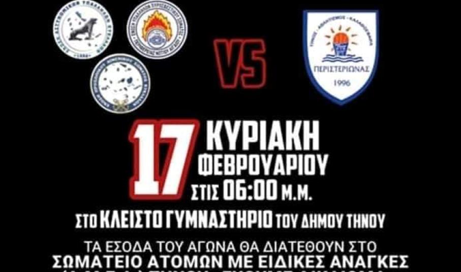 Την Κυριακή στις 17 Φεβρουαρίου στις 18:00 το απόγευμα θα πραγματοποιηθεί στο κλειστό γυμναστήριο της Τήνου, αγώνας φιλανθρωπικού χαρακτήρα μεταξύ των παικτών των Σωμάτων Ασφαλείας Νομού Κυκλάδων και των Παλαιμάχων του ΤΑΚ Περιστεριώνα.