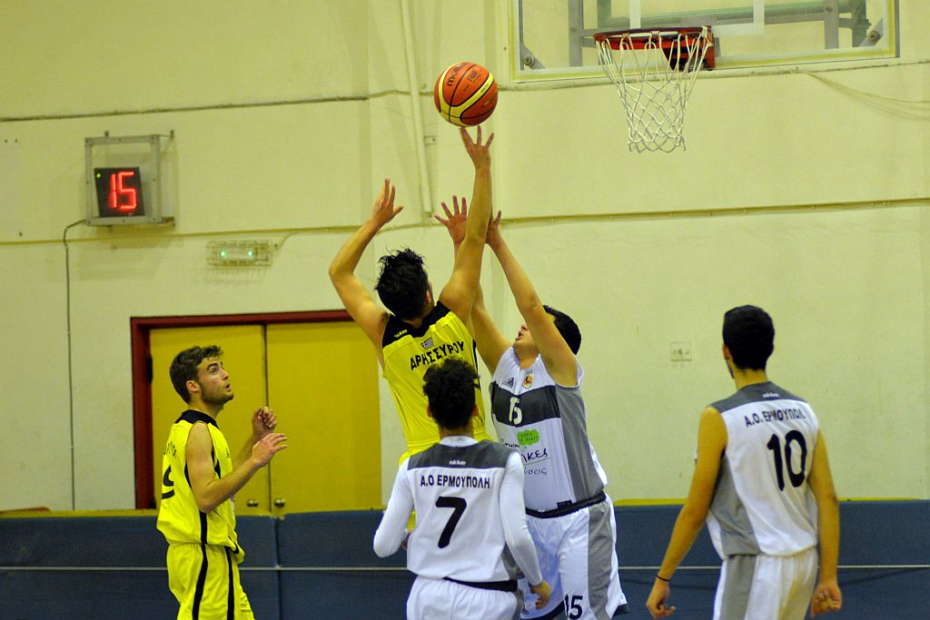 Με τον καλύτερο δυνατό τρόπο ολοκλήρωσε τις υποχρεώσεις της στο πρωτάθλημα των Εφήβων η ομάδα του Άρη Σύρου η οποία επικράτησε στο τοπικό ντέρμπι του νησιού με 62-54 του Α.Ο. Ερμούπολης. Το συγκρότημα του Αντώνη Βαρθαλίτη ήταν καλύτερο κατά τη μεγαλύτερη διάρκεια της αναμέτρησης κι έφτασε δίκαια στην κατάκτηση του ροζ φύλλου αγώνα. Μία νίκη η οποία μπορεί να συνδυαστεί και με το νέο ξεκίνημα του Άρη Σύρου μετά και τη συνεργασία του με την ΑΕΚ. Μία κίνηση που δείχνει από τα πρώτα της κιόλας βήματα ότι μπορεί να αποφέρει καρπούς και τα παιδιά του Άρη Σύρου να μάθουν ακόμη περισσότερα πράγματα. Ο Άρης μετά τη νίκη του επί της Ερμούπολης ανέβηκε στην τρίτη θέση του βαθμολογικού πίνακα τερματίζοντας μαζί με τον Α.Ο. Άνδρου που ήταν καλύτερος στα μεταξύ τους παιχνίδια. Οι τυπικά φιλοξενούμενοι μπήκαν καλύτερα στο παιχνίδι και κατάφεραν να προηγηθούν ακόμη και με επτά πόντους (4-11), όμως στη συνέχεια οι αθλητές του Αντώνη Βαρθαλίτη ανέβασαν την απόδοσή τους και κατάφεραν να ισοφαρίσουν σε 13-13 στο τέλος της πρώτης περιόδου. Από εκεί και πέρα η… πλάστιγγα έγειρε υπέρ της ομάδας του Άρη Σύρου, καθώς οι παίκτες του κ. Βαρθαλίτη έκλεισαν πολύ καλά όλους τους διαδρόμους που οδηγούσαν στην ρακέτα τους και κατάφεραν να βγάλουν εξτρά επιθέσεις. Αυτό είχε σαν αποτέλεσμα ο Άρη να ξεφύγει στο σκορ και να πάει στα αποδυτήρια με το +9 (34-23). Οι τυπικά φιλοξενούμενοι παρά την προσπάθεια που κατέβαλαν δεν κατάφεραν να πλησιάσουν στο σκορ, αφού οι παίκτες του Άρη ήταν κατάλληλα προετοιμασμένοι. Η εικόνα του αγώνα στο δεύτερο μέρος δεν άλλαξε με αποτέλεσμα ο Άρης να πάρει μία τεράστια νίκη κόντρα στην ομάδα της Ερμούπολης και ταυτόχρονα έβαλε τις βάσεις για την επόμενη χρονιά, όπου πλέον στόχος είναι η είσοδος στο final four.