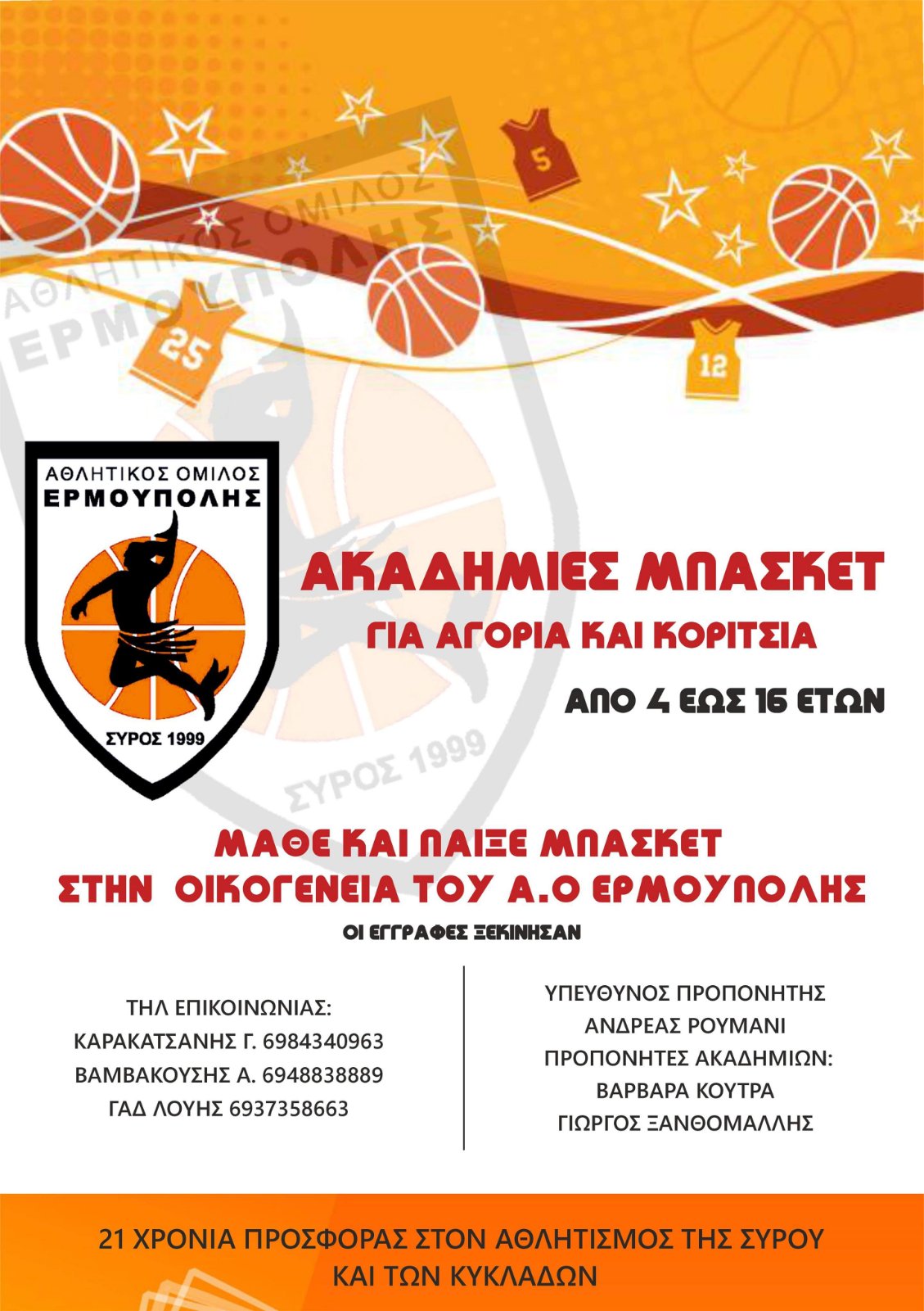 21 χρόνια προσφοράς του Α.Ο. Ερμούπολης στον Αθλητισμό της Σύρου και των Κυκλάδων.