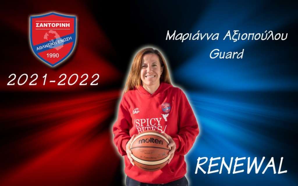 Η Α.Ε. Σαντορίνης προχώρησε σε μία σπουδαία κίνηση, αφού ανανέωσε την συνεργασία της με την Μαριάννα Αξιοπούλου. Μία αθλήτρια η οποία έχει μεγάλη εμπειρία από την συμμετοχή της σε Εθνικές κατηγορίες. Η διοίκηση της ομάδας, με ανακοίνωσή της, έκανε γνωστή την επέκταση της συμφωνίας τους και η Μαριάννα Αξιοπούλου θα είναι στο ρόστερ της γυναικείας ομάδας της Σαντορίνης, η οποία θα συμμετέχει στο πρωτάθλημα της Α2 κατηγορίας.