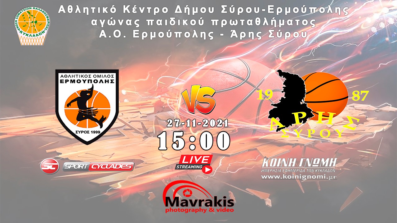 Live Streaming: Α.Ο. Ερμούπολης – Άρης Σύρου (παιδικό)