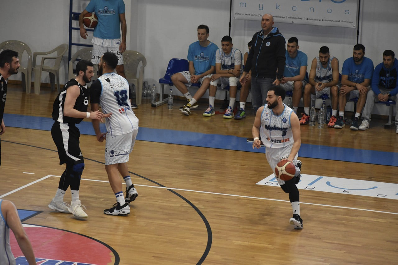 Στα πρώτα λεπτά της αναμέτρησης οι δύο ομάδες ήταν κοντά στο σκορ, όμως στη συνέχεια κατάφεραν να ξεφύγουν αρχικά με πέντε πόντους και να κλείσουν την πρώτη περίοδο στο +7 (19-12). Η εικόνα του αγώνα δεν άλλαξε ούτε στο δεύτερο δεκάλεπτο, καθώς οι γηπεδούχοι έλεγχαν το ματς, όμως δεν μπορούσαν να ξεφύγουν ώστε να νιώθουν πιο ασφαλείς. Οι δύο ομάδες πήγαν στα αποδυτήρια με τη διαφορά στο +7 (32-25). Οι γηπεδούχοι μπήκαν δυνατά με την έναρξη του δευτέρου ημιχρόνου και κατάφεραν αρχικά να φέρουν τη διαφορά πάνω από τους δέκα πόντους, αφού στο τέλος της περιόδου το σκορ έγινε 53-40. Στο τέταρτο και τελευταίο δεκάλεπτο οι Μυκονιάτες, με πατημένο αρχικά το γκάζι, έφεραν τη διαφορά πάνω από τους 20 πόντους (67-46) κι από εκείνο το σημείο κι έπειτα τα πάντα κυλούσαν όπως ήθελε η ομάδα του κ. Μανωλιτσάκη. Το μόνο που κατάφεραν στη συνέχεια οι φιλοξενούμενοι ήταν να μειώσουν προς το τέλος του ματς τη διαφορά σε 13 πόντους και το παιχνίδι να κλείσει με το 71-58.