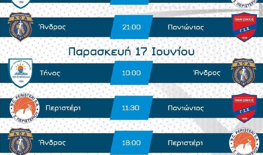 Η πρωταθλήτρια ομάδα του Περιστερίου μαζί με τον ιστορικό Πανιώνιο, την πάντα ανταγωνιστική ομάδα της γειτονικής Άνδρου και τον αγαπημένο μας Περιστεριώνα θα αναμετρηθούν μπασκετικά στην Τήνο σε ένα μοναδικό τριήμερο για αθλητές και θεατές.