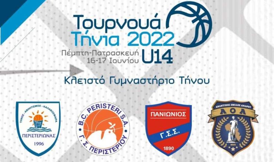 Από τις 16 έως και τις 17 Ιουνίου θα πραγματοποιηθεί τουρνουά μπάσκετ U14 στο κλειστό της Τήνου. Οι ομάδες που θα πάρουν μέρος στο τουρνουά εκτός από τον γηπεδούχο Περιστεριώνα είναι ο Πανιώνιος, ο Α.Ο. Άνδρου και το Περιστέρι. Ιστορικές ακαδημίες θα βρεθούν στο νησί της Παναγίας με τους παίκτες τόσο του Περιστεριώνα όσο και του Α.Ο. Άνδρου να έχουν την ευκαιρία να δοκιμάσουν τις δυνάμεις τους απέναντι σε αθλητές με μεγαλύτερη αγωνιστική εμπειρία.