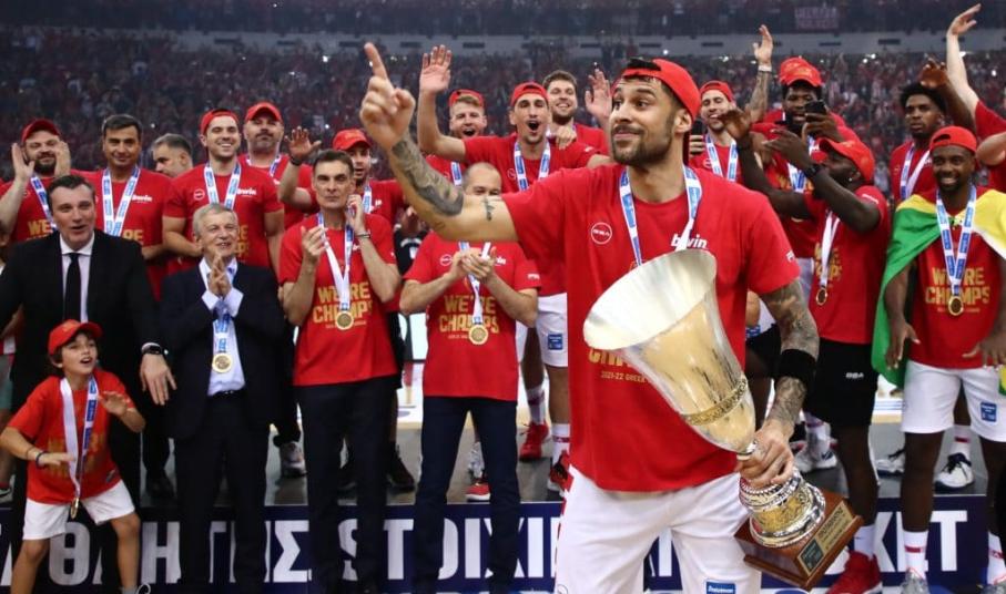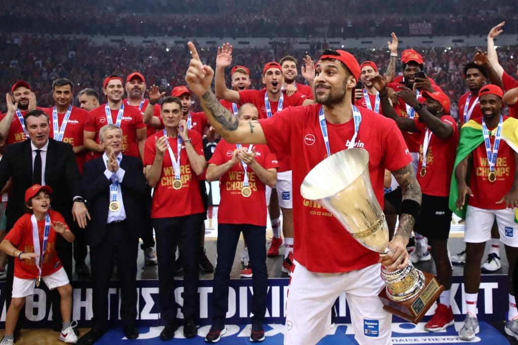 Στις 8 Μαΐου, με τους 11 πόντους που σημείωσε απέναντι στον Ιωνικό, μπήκε στη δεκάδα των κορυφαίων σκόρερ στην ιστορία του Πρωταθλήματος Ελλάδας. Στις 17 Ιουνίου 2022, κατέκτησε το τέταρτο πρωτάθλημα στην καριέρα του αφού ο Ολυμπιακός νίκησε τον Παναθηναϊκό στη σειρά των τελικών με 3-0. Αμέσως μετά το τέλος του πρωταθλήματος, ανακοίνωσε την απόσυρσή του από τα παρκέ σε ηλικία 37 ετών και μετά από 21 χρόνια επαγγελματικής καριέρας. Μετά την ανακοίνωση της απόσυρσης του, ομάδες του ελληνικού και ευρωπαϊκού μπάσκετ μέσω ανακοινώσεων εξήραν τον Έλληνα άσο. Ανακοινώσεις έβγαλαν επίσης η Ελληνική Ομοσπονδία Καλαθοσφαίρισης, ο ΕΣΑΚΕ, και η Ευρωλίγκα ανδρών.
