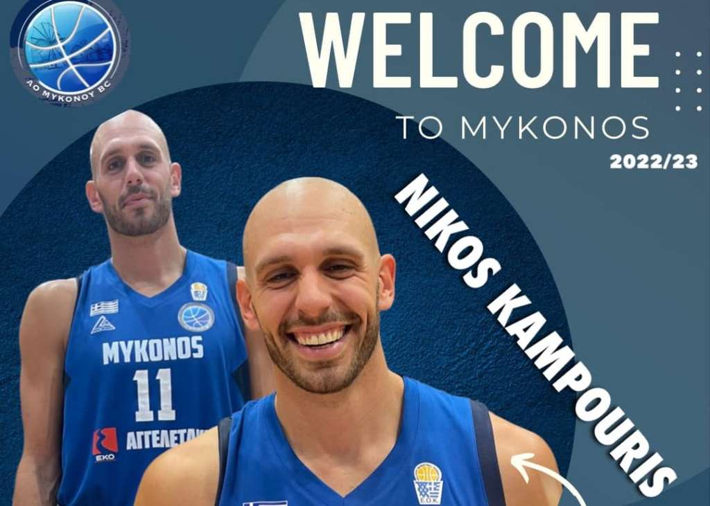 Ο Νίκος Καμπούρης παρουσιάστηκε και επίσημα από τη διοίκηση του Α.Ο. Μυκόνου. Βέβαια την πρώτη επίσημη παρουσία ο Νίκος Καμπούρης την είχε στην πρεμιέρα των αγώνων της Β΄ Εθνικής κατηγορίας. Η διοίκηση μετά τον αγώνα της ομάδας εξέδωσε ανακοίνωση που αναφερόταν στην συμφωνία των δύο πλευρών. Ο έμπειρος Έλληνας φόργουρντ έχει παρουσίες σε μεγάλες κατηγορίες και αναμένεται να βοηθήσει τα μέγιστα την Μύκονο στη Β΄ Εθνική.