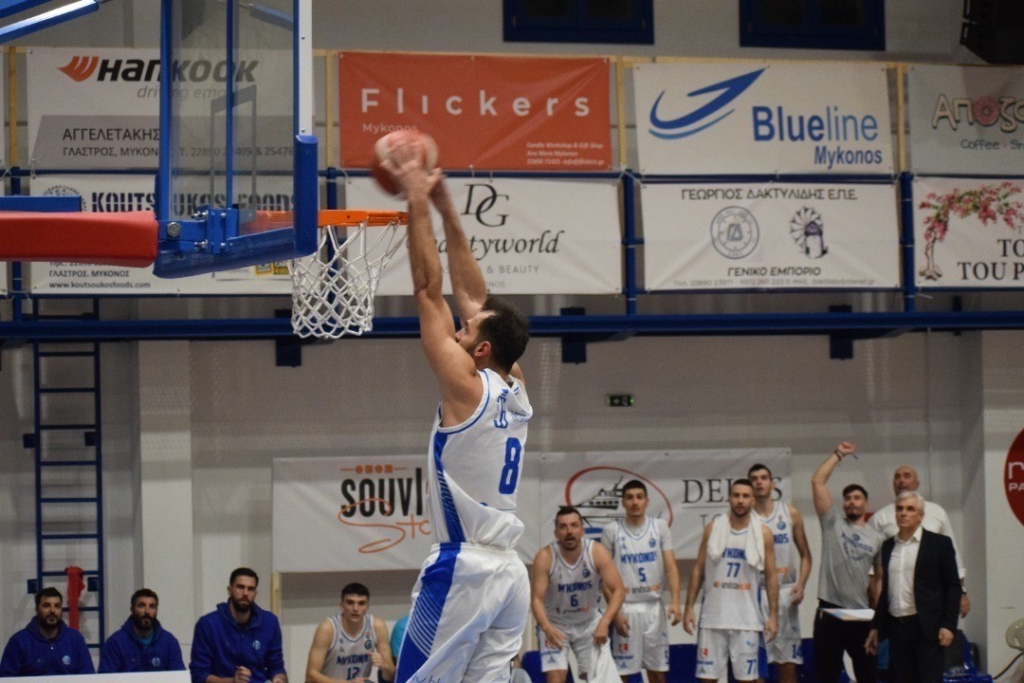 Η Μύκονος, από την πλευρά της, αντέδρασε και στο 34’ προηγούνταν με +5 πόντους (53-58) και όλα έδειχναν πως έλεγχε τον ρυθμό. Στο 38’ οι φιλοξενούμενοι παρά την προσπάθεια της ομάδας από του Ζωγράφου ήταν μπροστά στο σκορ με τέσσερις πόντους και το τελικό 60-67 του έδωσε ακόμη ένα… δίποντο.