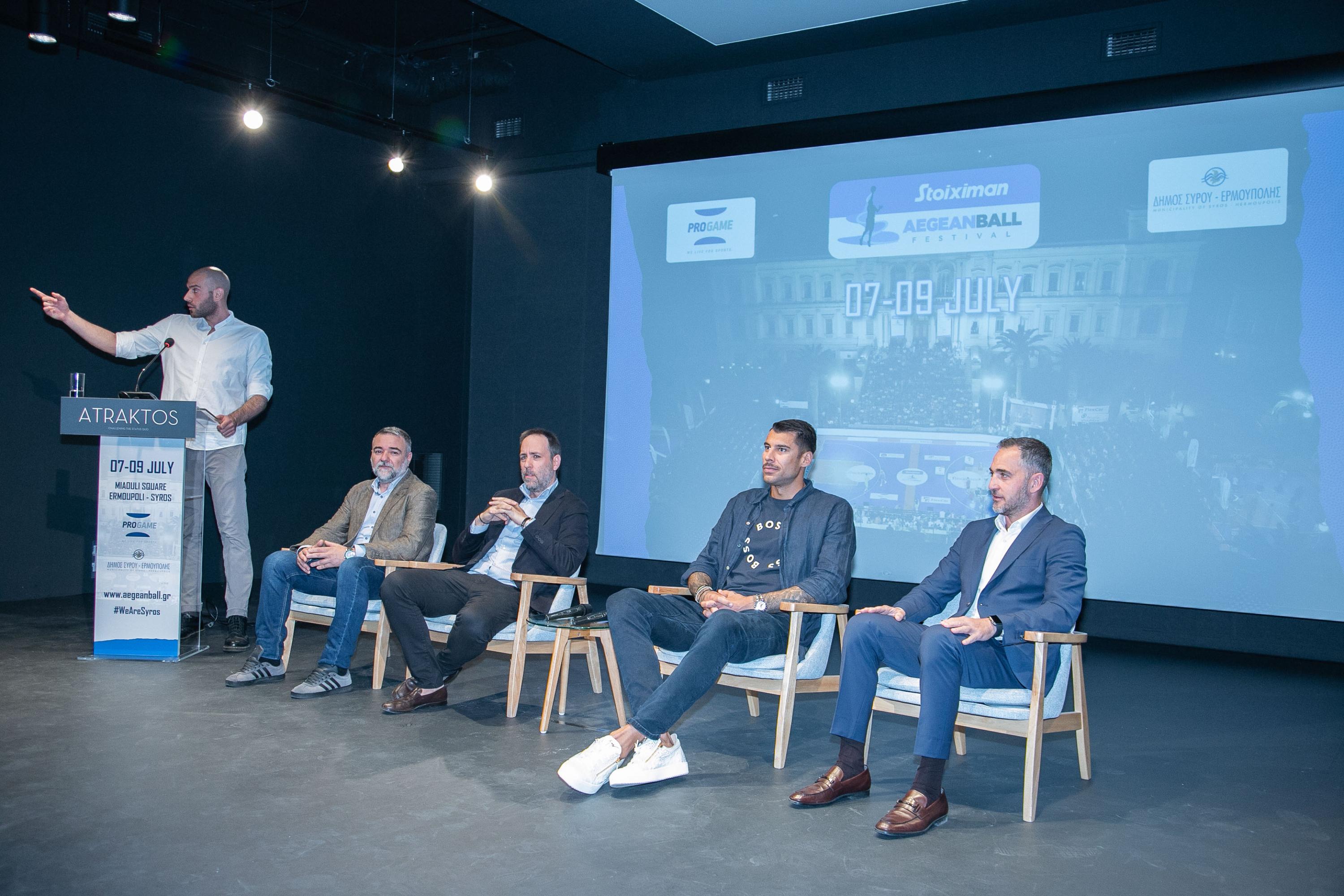 Από την πλευρά του ο Vice President της Stoiximan κ. Πάνος Κωνσταντόπουλος υπογράμμισε: «Για δεύτερη χρονιά, έχουμε την τιμή να στηρίζουμε το Stoiximan AegeanBall Festival, ένα μεγάλο αθλητικό γεγονός που αφήνει και ένα σημαντικό κοινωνικό αποτύπωμα για λογαριασμό της Σύρου και των Κυκλάδων, ευρύτερα. Είναι μια πραγματική γιορτή του Αθλητισμού και θέλω να εκφράσω την ευγνωμοσύνη μας προς όλους τους αθλητές-πρότυπα, που με την απλότητα, την ταπεινότητα και την καλοσύνη τους, μαζί με τον Γιώργο Πρίντεζη, θυμίζουν σε όλους μας το πόσο σημαντικό είναι να είναι προσιτοί στον απλό κόσμο. Πάντα φροντίζουμε οι χορηγικές μας συνεργασίες να έχουν και κοινωνικό χαρακτήρα. Όπως πέρυσι δωρίσαμε έναν καταψύκτη αιμοπεταλίων στο Νοσοκομείο της Σύρου, έτσι και φέτος δεσμευόμαστε να στηρίξουμε το νησί με ένα έργο υποδομής».