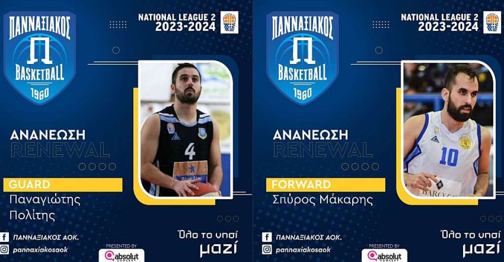 Το Δ.Σ. του Πανναξιακού βρίσκεται στην ευχάριστη θέση να ανακοινώσει την επέκταση της συνεργασίας για έναν ακόμη χρόνο με τους αθλητές Πολίτη Παναγιώτη και Μακαρη Σπύρο.