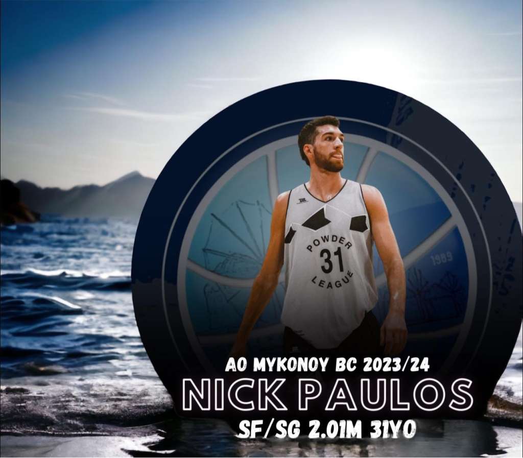 Σε μία σπουδαία μεταγραφική κίνησε προχώρησε η ομάδα του Α.Ο. Μυκόνου, καθώς τα βρήκε σε όλα και έκανε δικό της τον Νίκ Παύλο. Ο Ελληνοαμεριακός small forward έχει παίξει με επιτυχία για 4 χρόνια στο NCAA και στους UNC Greensboro Spartans. Στην Ελλάδα έχει αγωνισθεί στους Δούκα, Παγκράτι, Κολοσσό Ρόδου, ενώ την περσινή αγωνιστική περίοδο έπαιξε στην ομάδα του Ψυχικού που τερμάτισε στην πρώτη θέση της regular season της Elite League και είχε ένα εκπληκτικό ποσοστό 45% στα σουτ τριών πόντων.