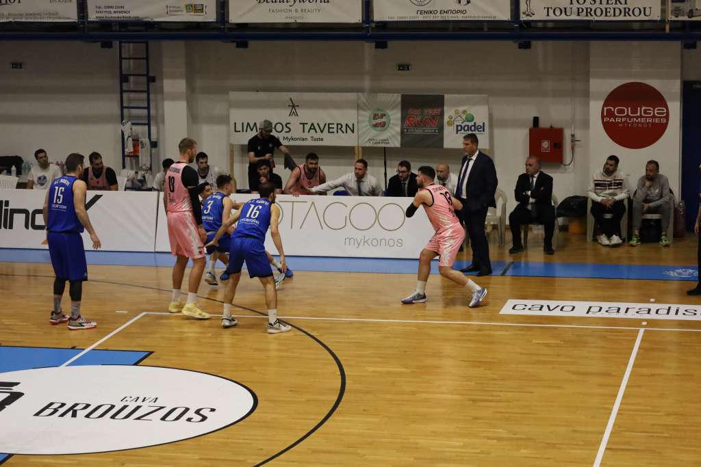 Το τρίτο δεκάλεπτο ήταν μοιρασμένο με τους φιλοξενούμενους να περνούν μπροστά με 58-60. Στο τέταρτο και τελευταίο δεκάλεπτο οι δύο ομάδες έπαιξαν για τη νίκη, με τους παίκτες του κ. Καρακώστα να έχουν καθαρό μυαλό στο φινάλε του αγώνα. Αυτό τους έδωσε την ευκαιρία να βρίσκουν τον δρόμο προς το καλάθι και να φεύγουν από τη Μύκονο με ένα σπουδαίο διπλό.