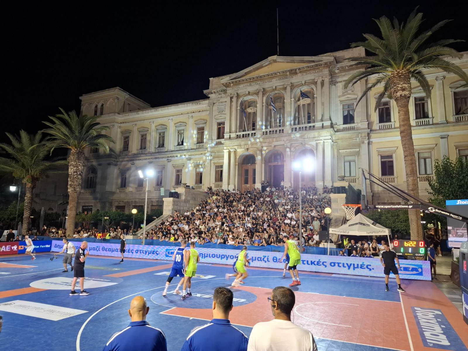 Για το γεγονός ότι η πλατεία τις ημέρες του τουρνουά φαντάζει… μικρή ο Γιώργος Πρτίντεζης ανέφερε: «Η αλήθεια ότι στην πλατεία Μιαούλη δεν υπάρχει υποδομή για κάτι μεγαλύτερο και κάναμε ότι καλύτερο μπορούσαμε για να φιλοξενήσουμε όσο περισσότερο κόσμο γίνεται. Πιστεύω ότι στην πλατεία βρέθηκαν περίπου 2000 με 2500 κόσμος, το οποίο είναι κάτι το πρωτόγνωρο και πολύ ωραίο. Μακάρι στη Σύρο να αποκτήσουμε ένα κλειστό για να μπορέσουν τα παιδιά που ασχολούνται με το μπάσκετ να έχουν πιο σωστές υποδομές. Αυτά τα παιδιά ακολουθούν το festival  και δείχνουν την αγάπη τους για το μπάσκετ. Πρέπει και το έχει ανάγκη το νησί να δημιουργηθεί ένας σωστός χώρος και γι’ αυτά».