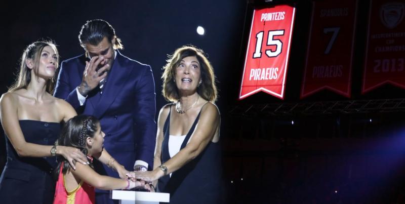 Γιώργος Πρίντεζης: Στην οροφή του ΣΕΦ η φανέλα του Ολυμπιακού με το Νο15