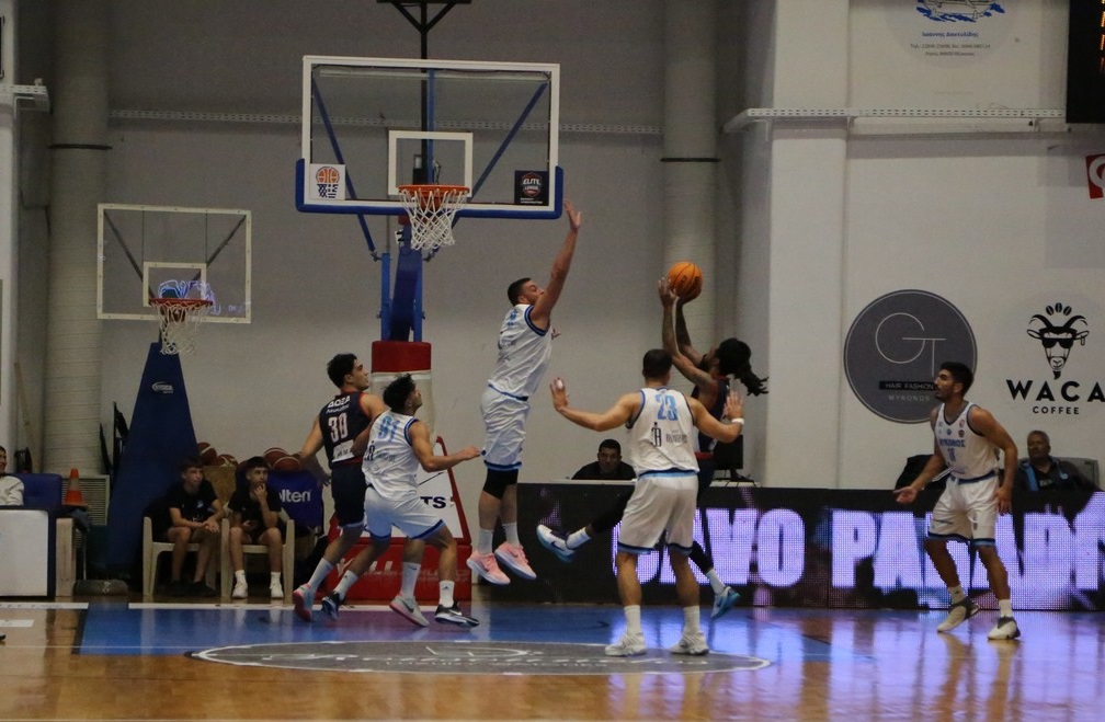 Την πρώτη του ήττα στο πρωτάθλημα της Elite League γνώρισε ο Α.Ο. Μυκόνου, καθώς δεν τα κατάφερε απέναντι στην Δόξα Λευκάδας. Η ομάδα του κ. Καλαμπάκου, αν και βρέθηκε πίσω στο ξεκίνημα του αγώνα, δεν το έβαλε κάτω και με επίθεση διαρκείας στο δεύτερο μέρος κατάφερε να γυρίσει την εις βάρος της κατάσταση και να πάρει το πολύτιμο για εκείνη ροζ φύλλο αγώνα, με 75-81.
