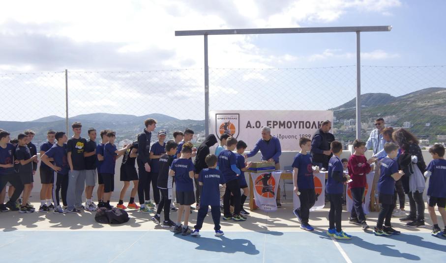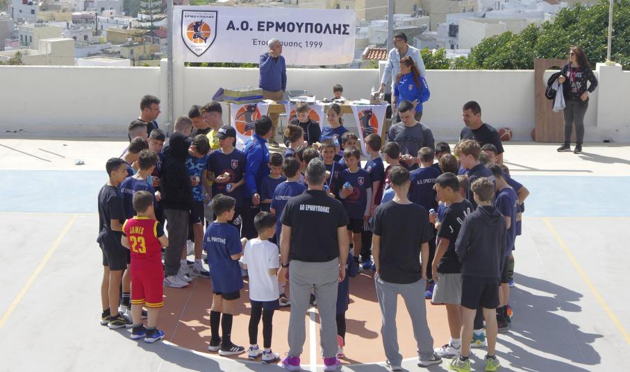 Πολύ όμορφη γιορτή καλαθοσφαίρισης διοργανώθηκε από τον ΑΟ Ερμούπολης στα εκπαιδευτήρια Δελασάλ. Γονείς και παιδιά βρέθηκαν την Κυριακή το πρωί στο γήπεδο για να διασκεδάσουν με διαγωνισμούς σουτ και δεξιοτεχνίας.