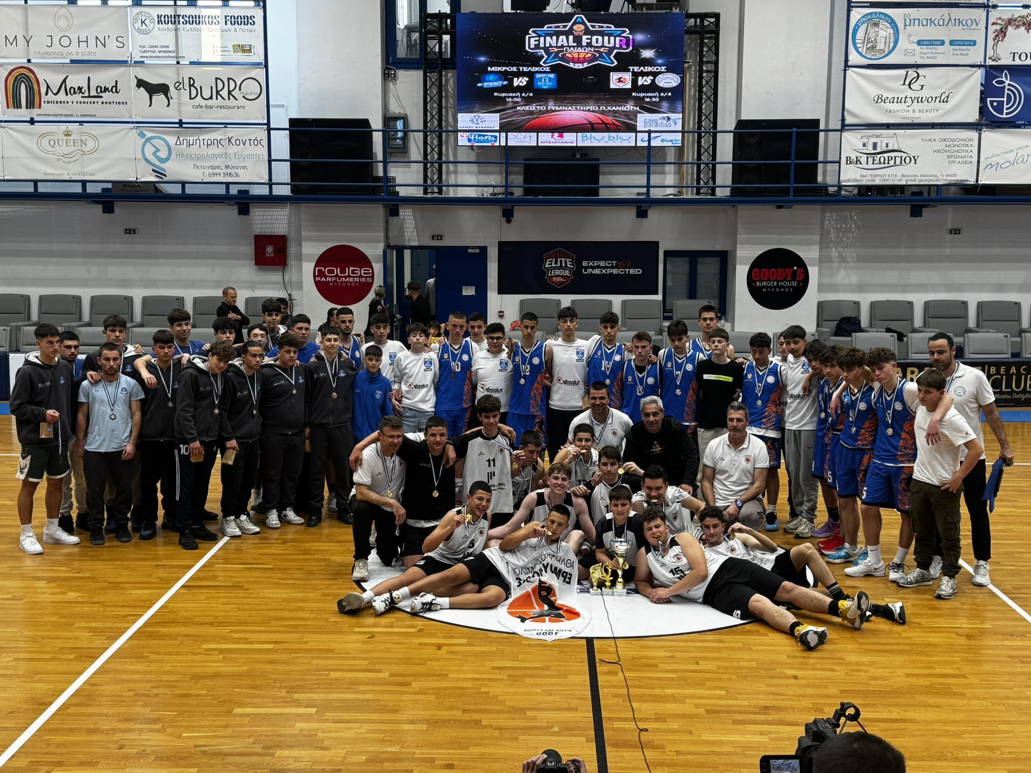 Τώρα, να σημειώσουμε εδώ πως το final four του παιδικού πρωταθλήματος πραγματοποιήθηκε στο κλειστό της Μυκόνου και εκτός από τον Α.Ο. Ερμούπολης, συμμετείχαν Μαρππησαϊκός, Α.Ο. Μυκόνου και Πανναξιακός.