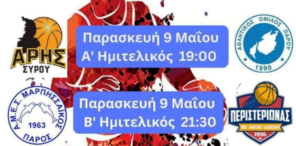 Οι ημιτελικοί της διοργάνωσης θα αρχίσουν σήμερα Παρασκευή το απόγευμα, με την αναμέτρηση μεταξύ του Άρη Σύρου και του ΑΟ Πάρου στις 19:00, ενώ στις 21:30 θα αναμετρηθούν ο Μαρπησαϊκός με τον Περιστεριώνα Τήνου.