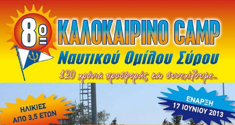 Για 8η ασταμάτητη χρονιά ο Ναυτικός Όμιλος Σύρου διοργανώνει το καλοκαιρινό του καμπ με σκοπό την εκμάθηση στα παιδιά των βασικών αθλήματων που καλλιεργεί στον Όμιλο, καθώς και την ασφαλή και επικοδομητική απασχόλησή τους όταν οι γονείς βρίσκονται στην εργασία τους.