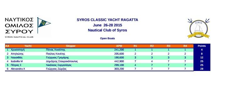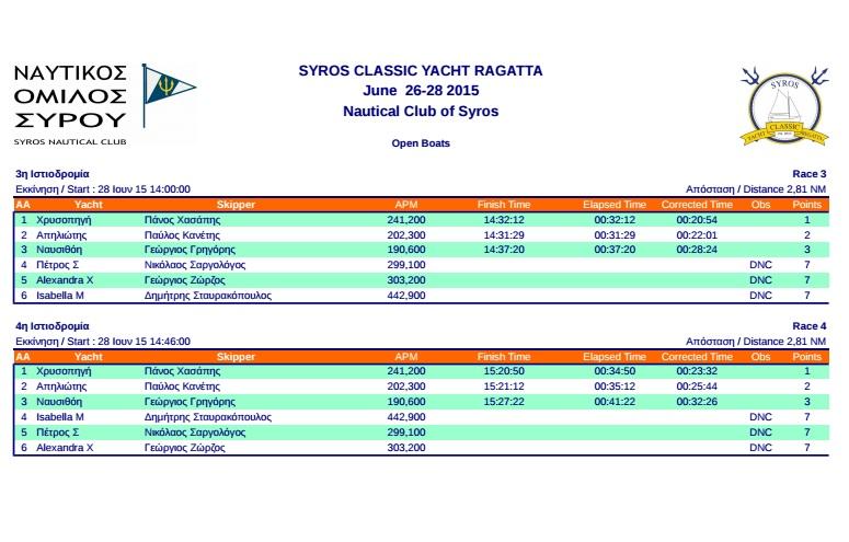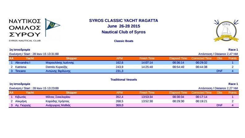 Ο Ναυτικός Όμιλος Σύρου σε συνεργασία με τον Ναυτικό Όμιλο Ελλάδας πραγματοποίησαν στην πρωτεύουσα των Κυκλάδων τον αγώνα Syros Classic Yacht Race. Στον αγώνα παρά τις πολλές αντιξοότητες πήραν μέρος συνολικά 12 σκάφη, από τα οποία τα 6 ήταν παραδοσιακά λατίνια, 3 κλασσικά και 3 καΐκια.