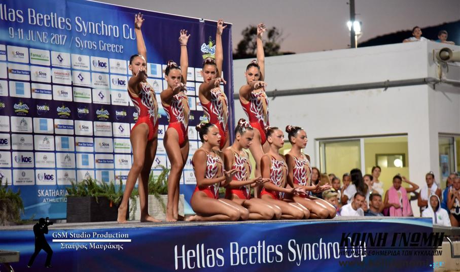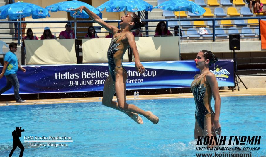 Με τον καλύτερο δυνατό τρόπο ολοκληρώθηκαν οι αγώνες της Διεθνούς διοργάνωσης της συγχρονισμένης κολύμβησης “Hellas Beetles Synchro Cup". Οι αγώνες ήταν σε συνδιοργάνωση του Δήμου Σύρου - Ερμούπολης, με την Κολυμβητική Ομοσπονδία Ελλάδας και τον Ναυτικό Όμιλο Μεταμόρφωσης. Η Σύρος, το τριήμερο των αγώνων είχε την ευκαιρία να γνωρίσει από κοντά ένα άθλημα ιδιαίτερο, εντυπωσιακό, αλλά ταυτόχρονα απαιτητικό. Τα κορίτσια που έλαβαν μέρος έδωσαν τον καλύτερό τους εαυτό, αφού πρόσφεραν πλούσιο θέαμα σε όλους όσους αποφάσισαν να βρεθούν τις μέρες των αγώνων στην εξέδρα του κολυμβητηρίου.