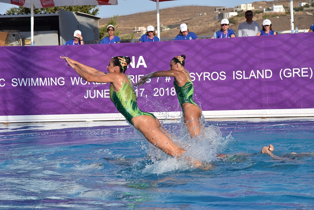 Με την κατάκτηση του ασημένιου μεταλλίου από την Εθνική μας ομάδα Καλλιτεχνικής (Συγχρονισμένης) Κολύμβησης Γυναικών στο Κόμπο ολοκληρώθηκε το βράδυ της Κυριακής (17/6) το διεθνές μίτινγκ “Hellas Beetles FINA Artistic Swimming World Series, Syros 2018″, που διοργανώθηκε με απόλυτη επιτυχία από την Κολυμβητική Ομοσπονδία και τον ΑΝΟΜ, στο Δημοτικό κολυμβητήριο της Σύρου.