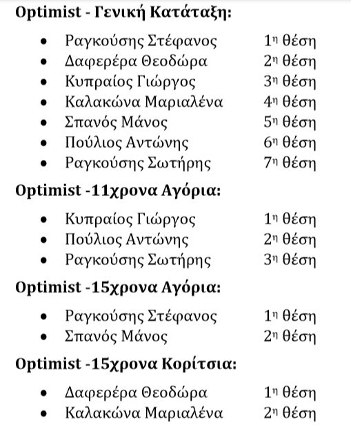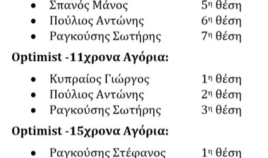 Οι 7 αθλητές του Ομίλου της Πάρου κατάφεραν να είναι στις ισάριθμες πρώτες θέσεις του πίνακα αποτελεσμάτων, ενώ συμμετείχε και η προ αγωνιστική ομάδα optimist που άφησε τις καλύτερες εντυπώσεις.