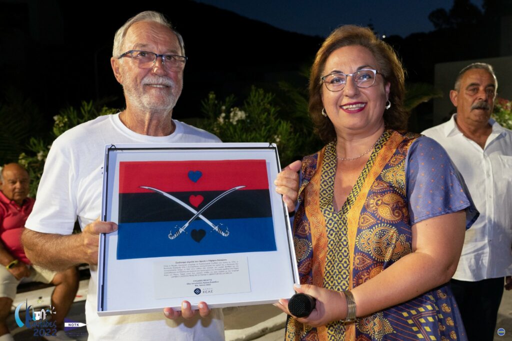 Το δώρο, ένα αντίγραφο της σημαίας που σχεδίασε ο Λάμπρος Κατσώνης σε γυάλινη κορνίζα, σχετίζεται με την ιστορία των θαλασσών της Κέας. Παράλληλα, οι ιστιοπλόοι είχαν την ευκαιρία να περιηγηθούν στην υπαίθρια έκθεση με θέμα ΤΑ ΝΑΥΑΓΙΑ ΚΑΙ Η ΙΣΤΟΡΙΑ ΤΩΝ ΘΑΛΑΣΣΩΝ ΤΗΣ ΚΕΑΣ που εγκαινιάστηκε το ίδιο βράδυ.