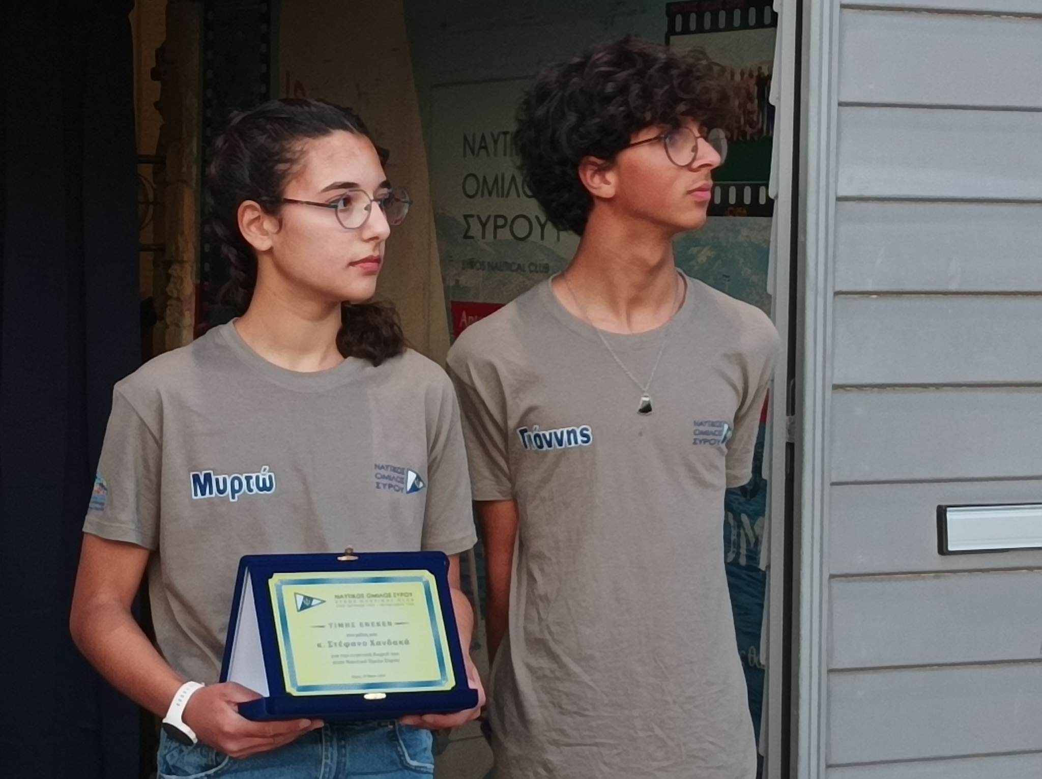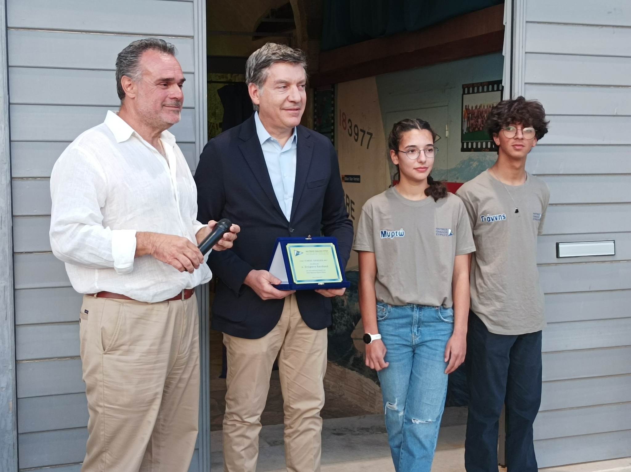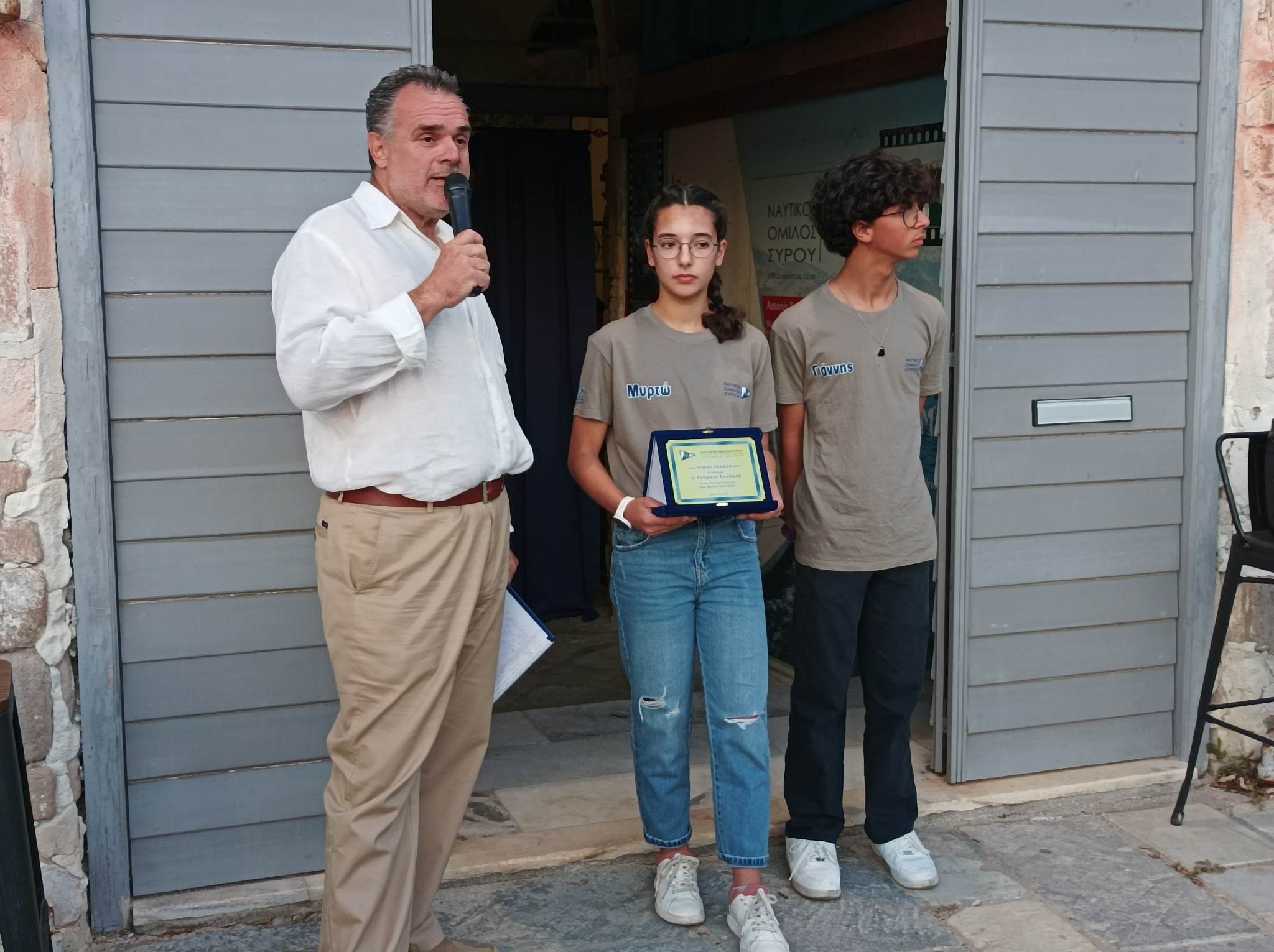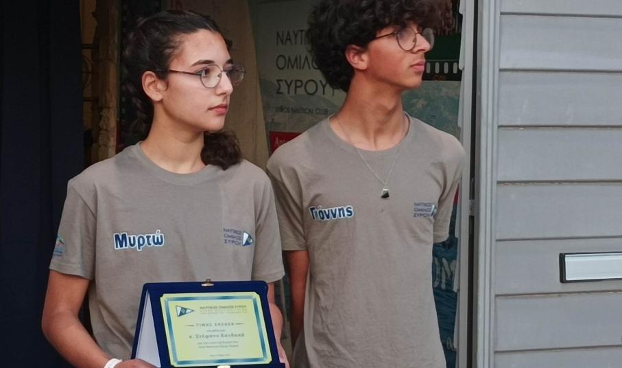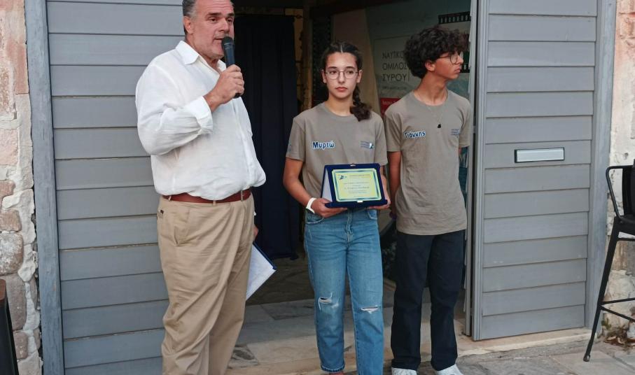 Ο Ν.Ο. Σύρου έχει μία πολύχρονη παράδοση, με μεγάλες επιτυχίες στα τμήματα της ιστιοπλοΐας. Τα τελευταία χρόνια έχει γίνει μία ριζική ανανέωση στον εξοπλισμό μας, σε σκάφη, φουσκωτά, στα αποδυτήρια και γενικά έχουν αλλάξει προς το καλύτερο πολλά πράγματα. Ο όμιλος καλλιεργούσε δύο κατηγορίες, τα Laser και τα Optimist. Ήταν πολύ δύσκολο για έναν περιφερειακό όμιλο να έχει κι άλλη κατηγορία παρόλο που τα οφέλη είναι πάρα πολλά. Παιδιά τα οποία τελειώνουν με την κατηγορία των optimist και σωματεία θα μπορούσαν να είχαν πάει κάπου αλλού κι όχι στα Laser θα είχαν την ευκαιρία να συνεχίσουν την καριέρα τους σε άλλη κατηγορία. Θα μπορούσαν να φέρνουν διακρίσεις, αλλά και γενικά να συνεχίσουν να αθλούνται. Όμως οι δυσκολίες για έναν περιφερειακό Όμιλο ήταν πολλές. Το κόστος για την κατηγορία των 420 είναι πάρα πολύ μεγάλο. Πριν από λίγο καιρό δέχθηκα ένα τηλεφώνημα από τον αντιπρόεδρο της Ελληνικής Ιστιοπλοΐκής Ομοσπονδίας και ο οποίος είναι γνωστός μου και έχει σχέση και με τη Σύρο. Με ρώτησε αν θέλουμε να ασχοληθούμε με την κατηγορία των 420. Του απάντησα φυσικά πως είναι πάρα πολύ δύσκολο γιατί αρχικά δεν είχαμε ούτε σκάφη, αλλά ούτε πληρώματα. Συζητήσαμε με τα μέλη μας και βρήκαμε τα δύο πρώτα παιδιά που θέλησαν να ασχοληθούν με την κατηγορία αυτή και τα παιδιά αυτά είναι η Μυρτώ και ο Γιάννης. Από εκεί και πέρα μιλήσαμε εκ νέου με τον αντιπρόεδρο της Ελληνικής Ιστιοπλοϊκής Ομοσπονδίας, όπου και του τονίσαμε πως ο Όμιλό μας δεν μπορούσε να επωμιστεί ένα τόσο μεγάλο βάρος. Από την πλευρά του φρόντισε να μας δωρίσει το ένα σκάφος και να μας βοηθήσει να αποκτήσουμε και ένα δεύτερο με πάρα πολύ μικρό κόστος. Από εκεί και πέρα κανόνισε να φιλοξενηθούν τα παιδιά στον Όμιλο του Παλαιού Φαλήρου για να μπορέσουν να προπονηθούν. Τα παιδιά αν και πήγαν αρχικά για να προπονηθούν κατάφεραν μέσα σε πολύ μικρό χρονικό διάστημα να πάρουν μέρος και στον πρώτους αγώνα στην κατηγορία των 420. Ότι πρόβλημα είχαμε καταφέραμε να το λύσουμε εκτός από ένα και αφορούσε την μεταφορά των σκαφών. Σ’ αυτό μας βοήθησε η οικογένεια Στεφάνου και θέλουμε να τους ευχαριστήσουμε σ’ αυτό. Ο Όμιλος τώρα αποφάσισε να δώσει σ’ αυτά τα δύο σκάφη τα ονόματα Αλεξάνδρα Χ. και Αθανασία Χ. προς τιμήν των παιδιών του δωρητή μας και για την δυνατότητα που έδωσε στον Όμιλο να γίνει πρωτοπόρος στην περιφέρεια. Επίσης, για τα παιδιά που θα έχουν την ευκαιρία να ασχοληθούν και γι’ αυτή την αμέριστη βοήθεια που μας χάρισε. Αφιερώνουμε αυτήν την βραδιά στον Παγκόσμιο πρωταθλητή του 92’, τον συμμετέχοντα στην Ολυμπιάδα του 1996, τον Αντιπρόεδρο της Ολυμπιακής Επιτροπής και αντιπρόεδρο της Ελληνικής Ιστιοπλοϊκής Ομοσπονδίας και πάνω από όλα τον Συριανό και φίλο μας Στέφανο Χανδακά».