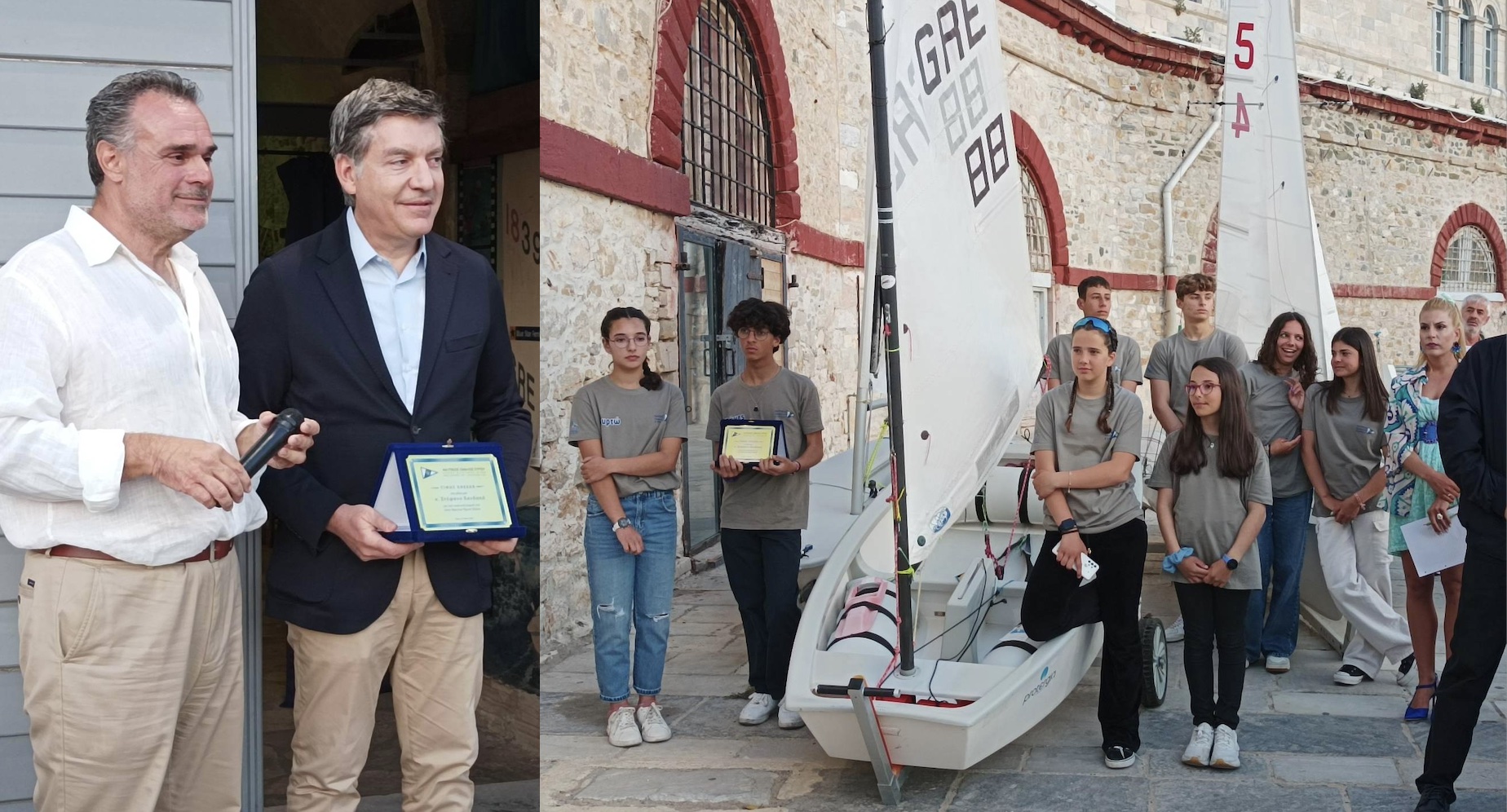 «Εδώ στον Νεώσοικο που μαζευτήκαμε, ξεκίνησα κι εγώ την ενασχόλησή μου με την ιστιοπλοΐα το 1979-80. Ενθουσιάστηκα με την επαφή μου με το νερό και ο κ. Σταμάτης Γρυπάρης μίλησε με τους γονείς μου στη συνέχεια, λέγοντάς τους πως το παιδί πάει καλά και θα έπρεπε να συνεχίσω στο άθλημα αυτό. Όταν στη συνέχεια πήγαμε στην Αθήνα αποφάσισα να ασχοληθώ με την ιστιοπλοΐα και στα 15 χρόνια που ήμουν στον πρωταθλητισμό μου κέρδισα πάρα πολλές χαρές. Κατάφερα να κερδίσω Πανελλήνια πρωταθλήματα, Ευρωπαϊκές και παγκόσμιες συμμετοχές, αλλά και Ολυμπιάδες. Το πιο σημαντικό πράγμα που κέρδισα και προέκυψε μέσα από την ιστιοπλοΐα ήταν ο χαρακτήρας μου. Γιατί μέσα από την ιστιοπλοΐα μπορείς να διαμορφώσεις ένα ισχυρό χαρακτήρα. Μπορεί να έχεις συνεχώς κοντά σου, τους προπονητές σου, τους ψυχολόγους σου και όλο το τιμ από πίσω σου, όμως όταν μπαίνεις στο σκάφος σου είσαι εντελώς μόνος. Οπότε είναι μία προσομοίωση της ζωής, καθώς αλλάζουν τα κύματα, οι καιρικές συνθήκες, ο άνεμος, αλλάζουν γενικά τα πάντα όλες τις στιγμές. Έτσι, πρέπει από πολύ μικρή ηλικία όλες αυτές τις αλλαγές να προσπαθείς να τις καταλάβεις και αναλόγως να προσαρμοστείς, για να ανταπεξέλθεις στις δυσκολίες που θα βρεις μπροστά σου. Είναι ένα μάθημα ζωής καθώς θα πρέπει να αναλαμβάνεις στις ευθύνες σου συνεχώς για να μπορείς να ανταπεξέλθεις στα πάντα. Επίσης, μαθαίνεις πως τίποτα δεν μπορείς να κερδίσεις χωρίς σκληρή δουλειά, δεν υπάρχει περίπτωση να πας καλά στην ιστιοπλοΐα αν δεν κάνεις συνεχώς προπόνηση. Όλα αυτά εμένα μου έχτισαν τον δικό μου χαρακτήρα. Εμένα, αυτό είναι το μεγάλο μου ευχαριστώ στο άθλημα και ελπίζω με αυτή τη δωρεά που κάναμε τώρα, αλλά και σ’ αυτές που θα ακολουθήσουν στο μέλλον να μπορέσουν όλο και περισσότερα παιδιά να ασχοληθούν με την ιστιοπλοΐα, να την αγαπήσουν και βεβαίως να διακριθούν. Κλείνοντας, θέλω να σημειώσω εδώ, πως θυμάμαι τη δεκαετία του 1980 είχαμε στον όμιλο πολλά σκάφη, καθώς υπήρχαν 470, laser και πιστεύω σιγά – σιγά να μεγαλώσουμε τις κατηγορίες και θα βγουν και πάλι μεγάλοι πρωταθλητές από τον Όμιλο».