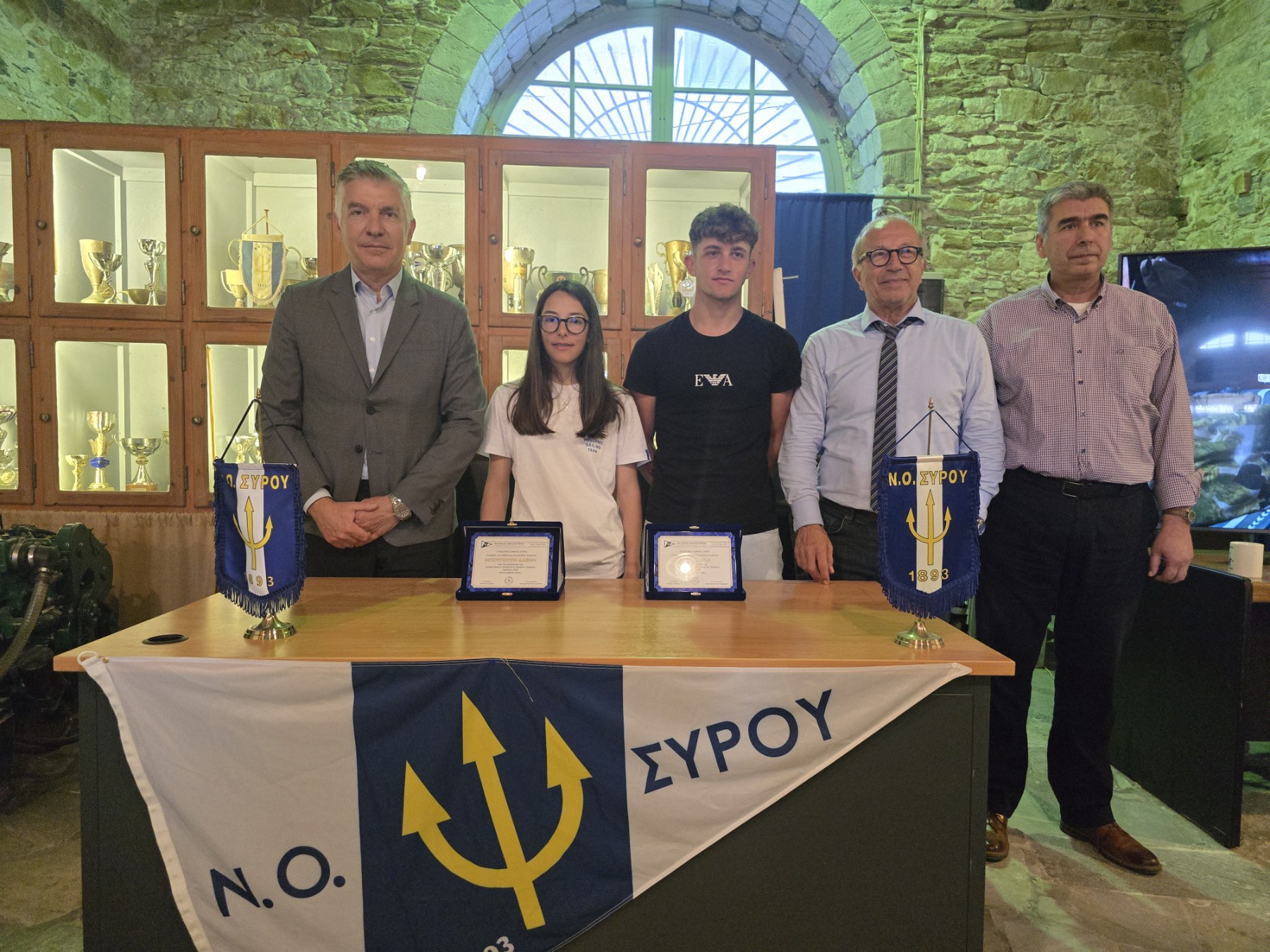 Ο Ναυτικός Όμιλος Σύρου σε μία ζεστή εκδήλωση βράβευσε τους αθλητές του ομίλου Δάφνη Μπουγιούρη, αλλά και Ηλία Γαβιώτη για την πρόκρισή τους στην εθνική ομάδα Ιστιοπλοΐας Τριγώνου.