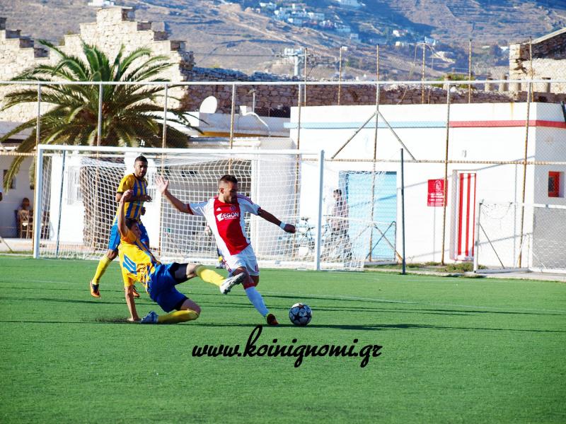 Από την πλευρά του ο Α.Ο. Σύρου πραγματοποίησε το χειρότερό του παιχνίδι για την εφετινή χρονιά και θα πρέπει να νιώθει ικανοποιημένος από τον βαθμό της ισοπαλίας, αν και θα μπορούσε να είχε πάρει τη νίκη, αφού δέχθηκε το γκολ της ισοφάρισης στις καθυστερήσεις της αναμέτρησης.