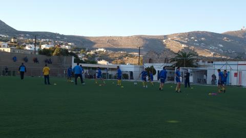 16: 45 Ξεκίνησε το παιχνίδι μεταξύ του Α.Ο. Σύρου και της Άνω Μεράς, στο γήπεδο της Ερμούπολης.