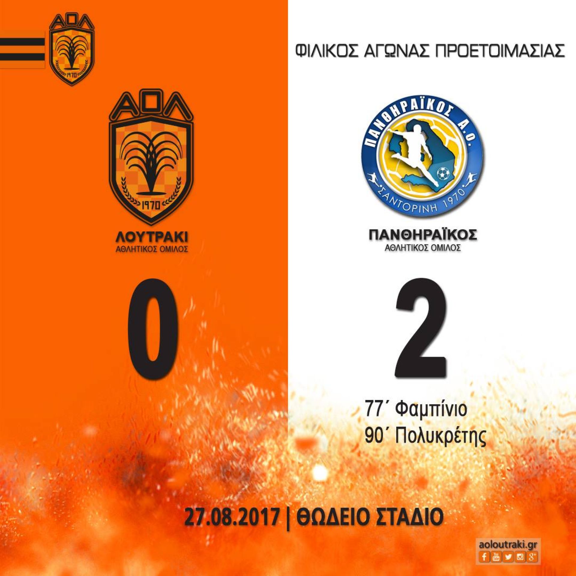 Ο Πανθηραϊκός επικράτησε με 0-2 στο εκτός έδρας φιλικό προετοιμασίας με το Λουτράκι
