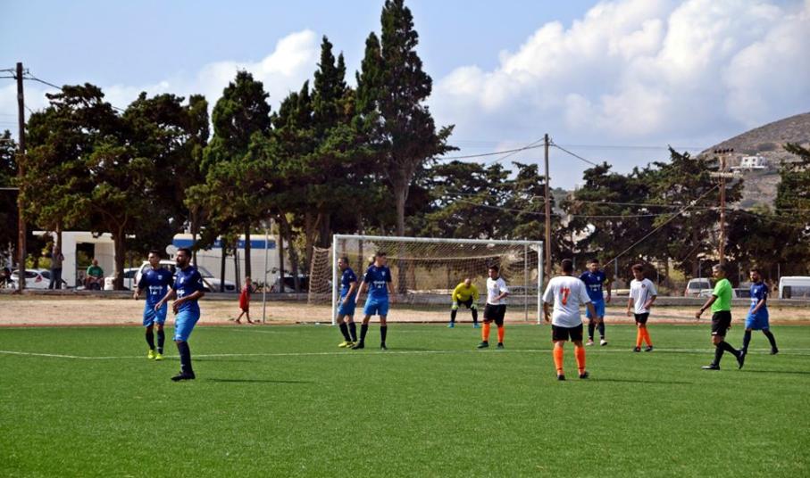 Η ομάδα του Θεόφιλου Παχατουρίδη ήταν καλύτερη σε όλη τη διάρκεια της αναμέτρησης και δίκαια πήρε το πρώτο τρίποντο της χρονιάς. Από την άλλη πλευρά οι φιλοξενούμενοι προσπάθησαν να αντισταθούν, όμως απέναντι στην ανώτερη Μύκονος δεν κατά κατάφεραν. Οι γηπεδούχοι μπήκαν δυνατά στο παιχνίδι και αξιοποίησαν μία από τις πρώτες ευκαιρίες τους. Μόλις στο 9’ άνοιξαν το σκορ με τον Αλμπάνη ο οποίος με ατομική ενέργεια μπήκε μέσα στην μεγάλη περιοχή και με σουτ έστειλε τη μπάλα στα δίχτυα 1-0. Παρά το γρήγορο τέρμα οι γηπεδούχοι μέχρι το τέλος του δευτέρου μέρους δεν κατάφεραν να φτάσουν σε ένα δεύτερο γκολ, παρά τις αρκετές ευκαιρίες που είχαν. Στην επανάληψη οι γηπεδούχοι πίεσαν ακόμη περισσότερο καθώς ήθελαν να κλειδώσουν όσο πιο γρήγορα γίνεται τη νίκη και στο 48’ ο Ηλίας με απευθείας εκτέλεση κόρνερ έκανε το 2-0. Ο Παπαδόπουλος στο 60’ με ωραίο σουτ έφερε το σκορ στο 3-0.