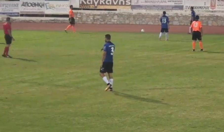 15’ άτυχος ο Βαθρακοκοίλης καθώς είδε τη μπάλα σε σουτ από το ύψος της μεγάλης περιοχής να σταματά το δοκάρι του Χαμηλοθώρη.