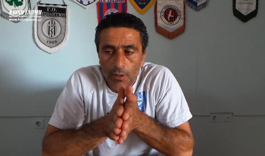 «Μετά τον υποβιβασμό της ομάδας από την Γ’ Εθνική πριν από τέσσερα χρόνια, καθίσαμε με τη διοίκηση και συζητήσαμε για τον μέλλον αυτής. Οι διοικούντες τότε πήραν μία απόφαση να γίνει μία προσπάθεια τα επόμενα χρόνια – όπως κι έγινε – ώστε η Μύκονος να αποκτήσει ένα κορμό αθλητών που να μπορούμε να δουλέψουμε πάνω σ’ αυτούς και στη συνέχεια να προσπαθήσουμε να κάνουμε το βήμα παραπάνω. Είχαμε την τύχη χωρίς να έχουμε κάποιον ιδιαίτερο στόχο να το κάνουμε όλο αυτό, δηλαδή να πλαισιώσουμε την ομάδα μας με αξιόλογα παιδιά κάτι που έχει αρχίσει να φαίνεται καθώς στην καλοκαιρινή μεταγραφική περίοδο αποκτήσαμε μόνο τέσσερις παίκτες. Αυτό σημαίνει πως έχουμε το βάθος σαν ομάδα και επικεντρωνόμαστε πλέον μιας και έχουμε βελτιώσει και το γήπεδό μας στον στόχο μας που δεν είναι άλλος από το να κάνουμε το επόμενο βήμα. Πιστεύουμε και το έχουμε δείξει κερδίζοντας τον σεβασμό των αντιπάλων μας, ότι έχουμε την ικανότητα ως ομάδα να το κάνουμε αυτό. Έχουμε τις κατάλληλες συνθήκες, με τη διοίκηση να είναι δίπλα μας και να μας στηρίζει, η ομάδα ταυτόχρονα εκπέμπει υγεία και νομίζω ότι ο χρόνος είναι σύμμαχός μας. Πιστεύω ότι θα μας δικαιώσει, αρκεί να έχουμε την υπομονή γιατί όπως είπα και πριν το πρωτάθλημα είναι σε δύο γύρους. Το πρώτο ημίχρονο θα παιχθεί μέχρι τον Δεκέμβριο και το άλλο μισό από εκεί και πέρα. Άρα θα πρέπει να περιμένουμε για το δεύτερο μισό του πρωταθλήματος και εκεί θα μπορούμε να κάνουμε τους υπολογισμούς μας. Έχουμε την θέληση να κάνουμε το βήματα παραπάνω και θέλω να πιστεύω πως φέτος θα είναι η χρονιά μας. Πέρσι πήγαμε στον τελικό, όμως φέτος είμαστε καλύτερα προετοιμασμένοι για να μπορέσουμε να κυνηγήσουμε και να υλοποιήσουμε τον στόχο μας».