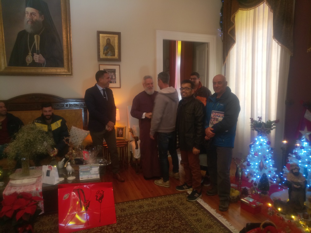 Τέλος, ο Μητροπολίτης Σύρου έδωσε στην αποστολή του Α.Ο. Σύρου ένα ρόδι ως γούρι για το 2019 και ένα ημερολόγιο.