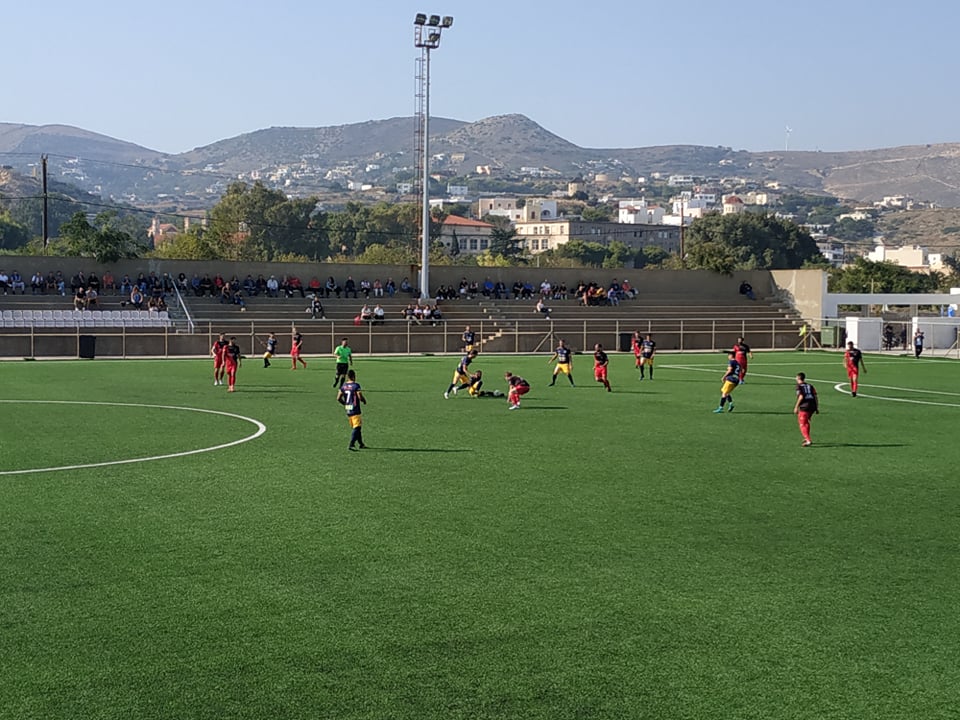 81’ ο Γολιδόπουλος έπειτα την ατομική ενέργεια μπήκε μέσα στην περιοχή και με πλασέ έκανε το 0-9 για τον Α.Ο. Σύρου.