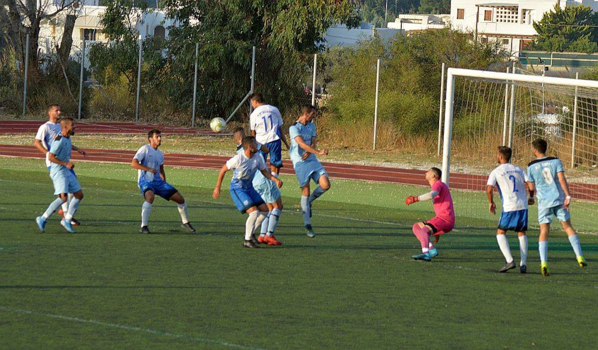 16’ ο Μπαλλής με κεφαλιά ψαράκι έπειτα από εκτέλεση κόρνερ είδε τη μπάλα να περνά δίπλα από το τέρμα της Σερίφου.