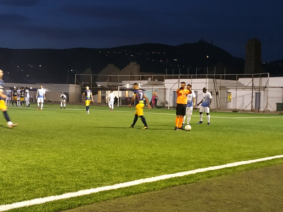 3’ο Αλμπάνης με σουτ προσπάθησε να νικήσει τον Βαμβακούρη, όμως ο γκολκίπερ της Σύρου δεν είχε πρόβλημα και μάζεψε εύκολα τη μπάλα.