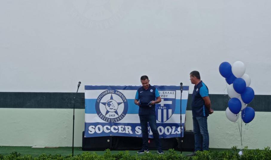 Το απόγευμα της Τετάρτης, στον θερινό σινεμά «Παλλάς», έγινε η παρουσίαση της συνεργασίας των ακαδημιών της Ελλάς Σύρου και του Ατρόμητου. Το κλίμα, παρά τις συνθήκες που επικρατούν λόγω πανδημίας, ήταν εορταστικό. Οι Συριανοί απέδειξαν για ακόμη μία φορά πόσο φιλόξενοι είναι κι αυτό φάνηκε κι από τις δηλώσεις των ανθρώπων του Ατρόμητου που ταξίδεψαν από την Αθήνα. Στη Σύρο βρέθηκε, λόγω της παρουσίας της συνεργασίας των δύο ακαδημιών, ο Απόστολος Αποστόλου, υπεύθυνος του Δικτύου σχολών της Αθηναϊκής ομάδας, αλλά και ο δημοσιογράφος του Ατρόμητου, Παύλος Κατώνης. Κατά τη διάρκεια οι άνθρωποι του Ατρομήτου έδωσαν τα δικά τους δώρα αφού θέλησαν να τιμήσουν τους Συριανούς ποδοσφαιριστές που πέρασαν από την ομάδα των Αθηνών. Όπως ήταν φυσικό η ατμόσφαιρα ήταν συγκινητική όταν παρέλαβε την φανέλα με τον αριθμό 5 ο Μιχάλης Μυγλός, ο οποίος στο ξεκίνημα της πλούσιας επαγγελματικής του καριέρας πέρασε κι από τον Ατρόμητο, όπου όπως είπε είχε σαν συμπαίκτη τον κ. Αποστόλου.