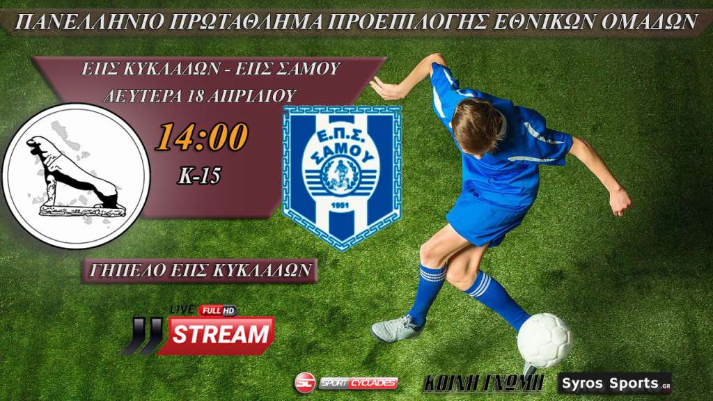(1) - Live Stream: ΕΠΣ Κυκλάδων - ΕΠΣ Σάμου (Πρωτάθλημα Μικτών Ομάδων Κ15)